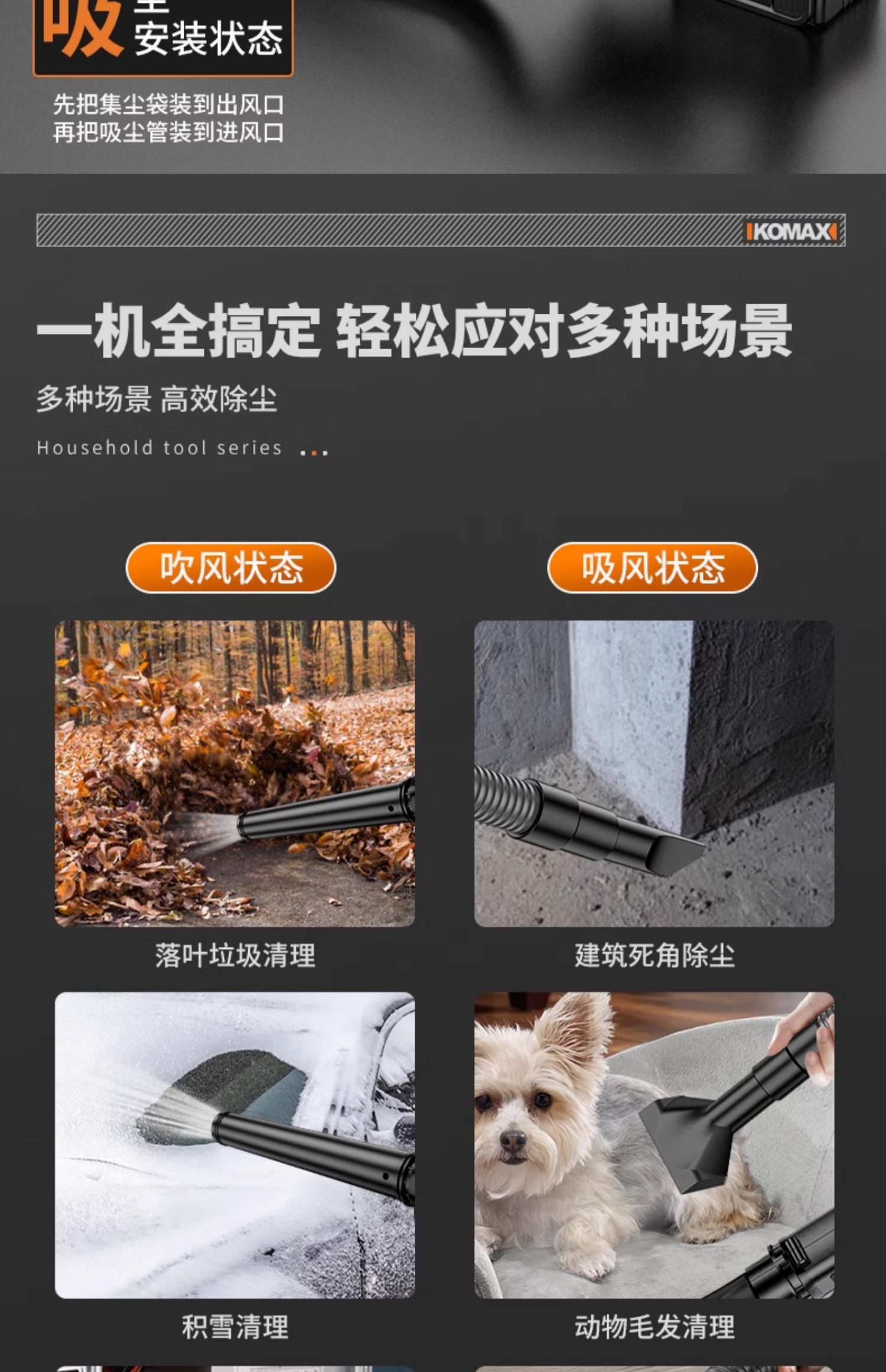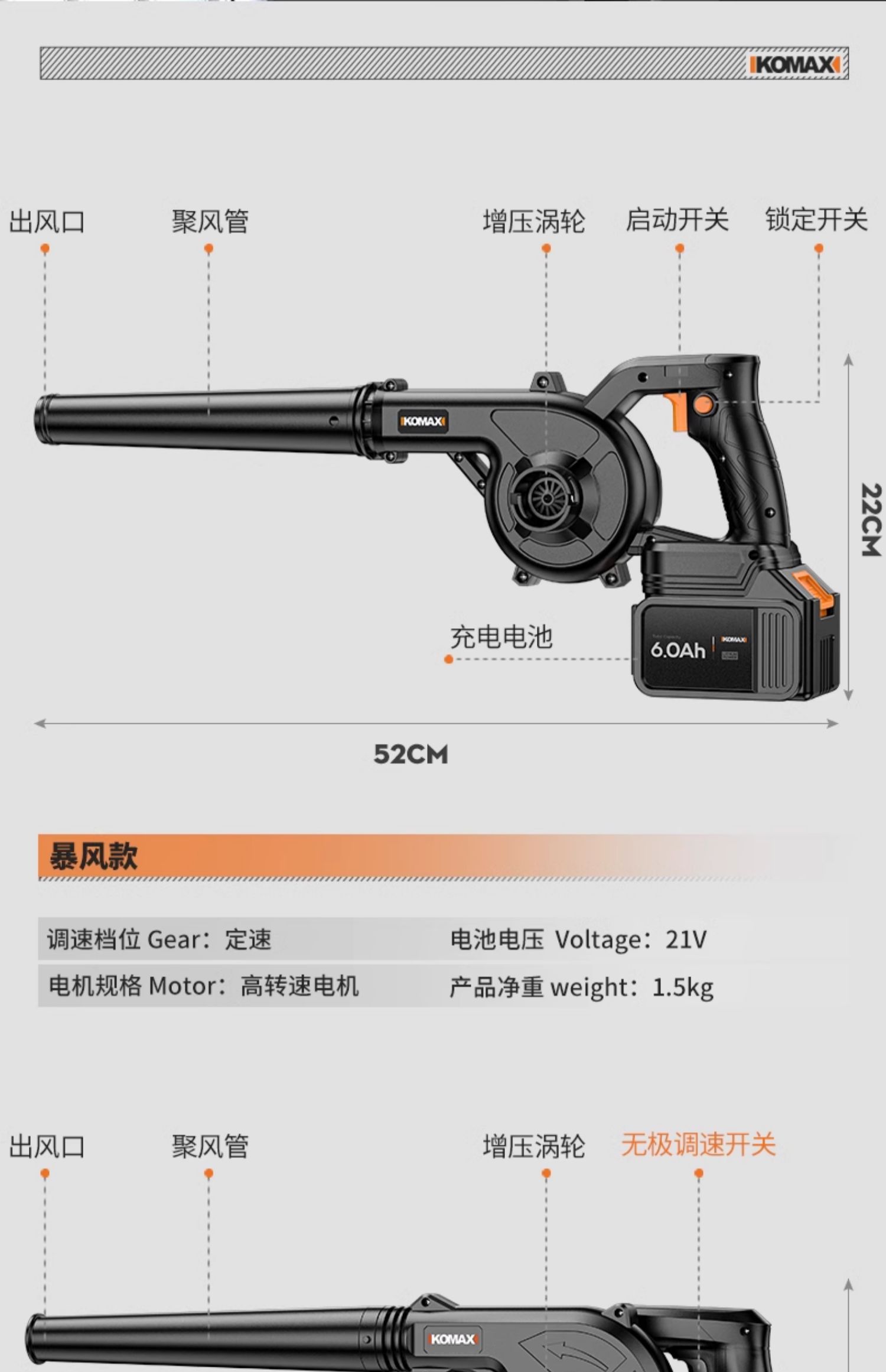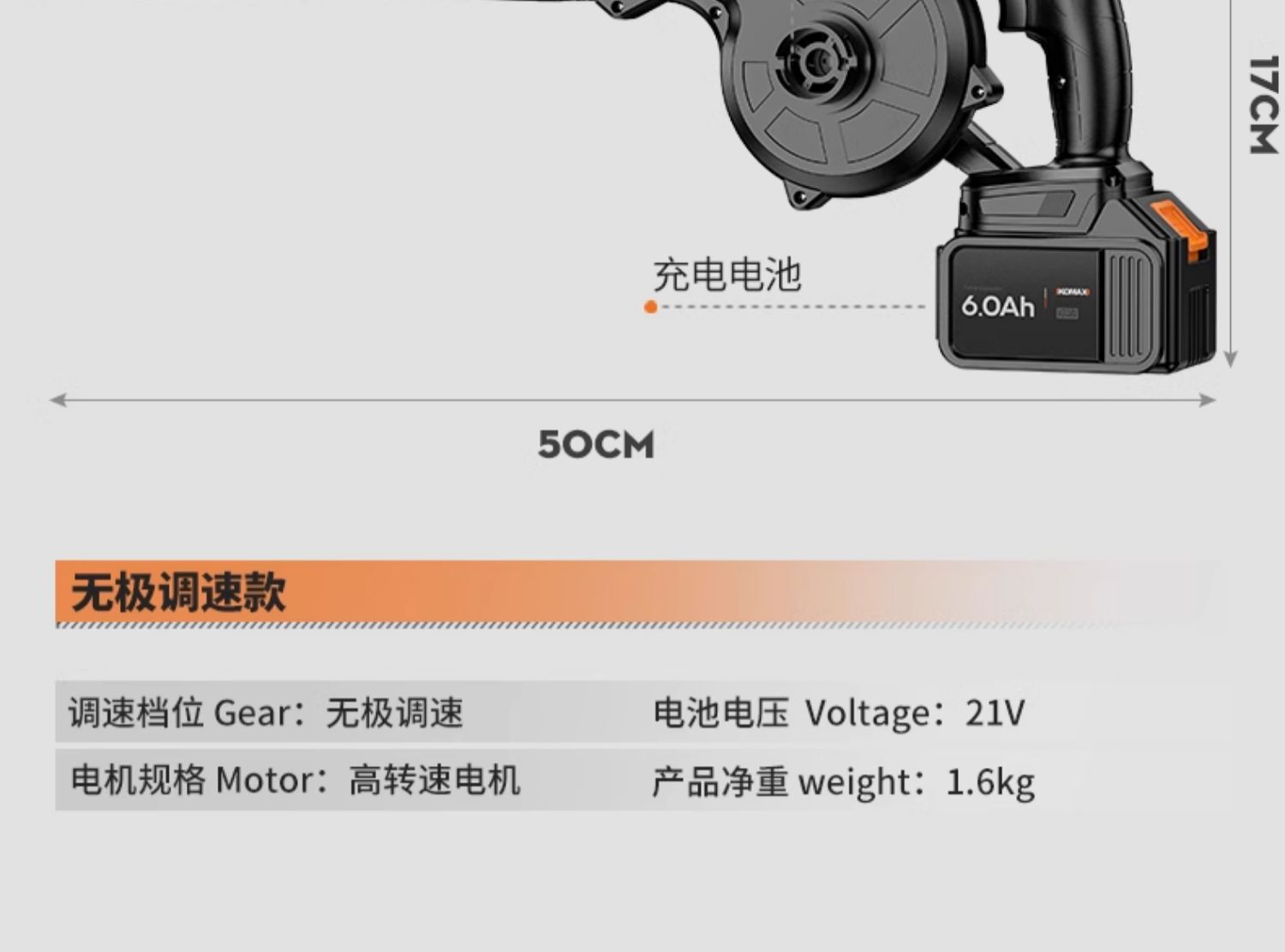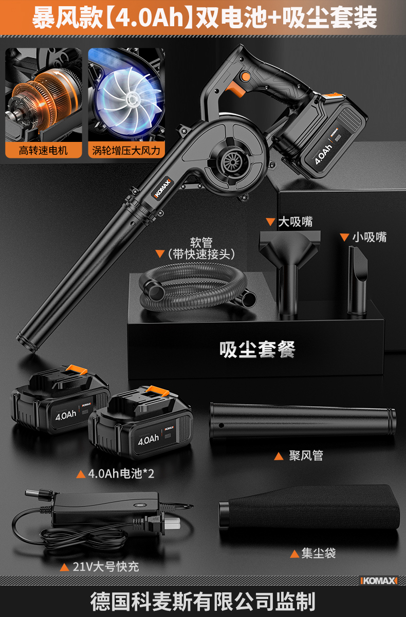 • 무단계 속도 조절 모델 [8.0Ah] 단일 배터리 + 진공 세트