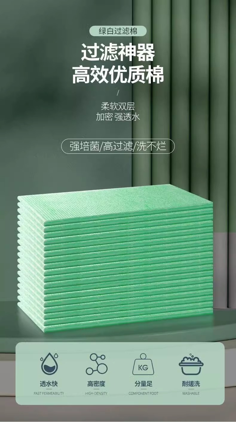 고밀도 필터면 어항 녹색 및 흰색 면 필터면 물 청소 필터 메쉬 정수 면 필터 재료 정수 배양 박테리아