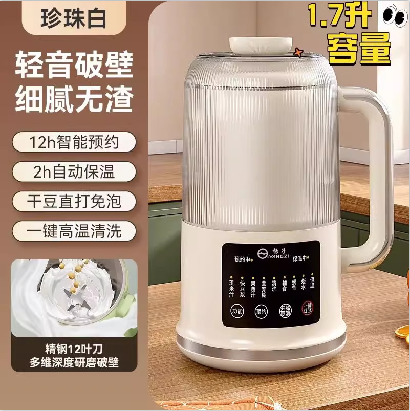 Yangzi Qingyin 벽 파괴 두유 기계 자동 가정용 1.7L 대용량 12 블레이드 스테인레스 스틸 칼 벽 파괴 필터 프리 요리 기계스토어 가기