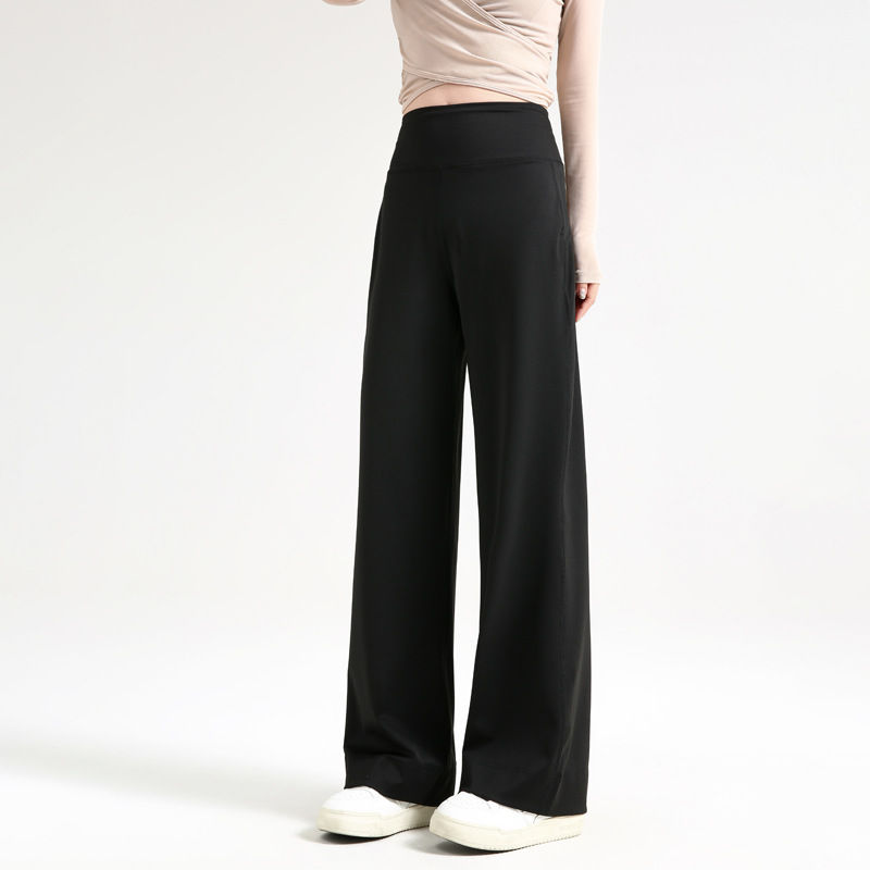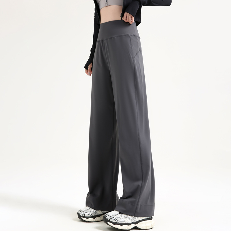 키가 큰 느슨한 요가 바지 외부 착용 2025 새로운 요가 착용 넓은 다리 바지 봄 높은 허리 스포츠 피트니스 스트레이트 다리 바지