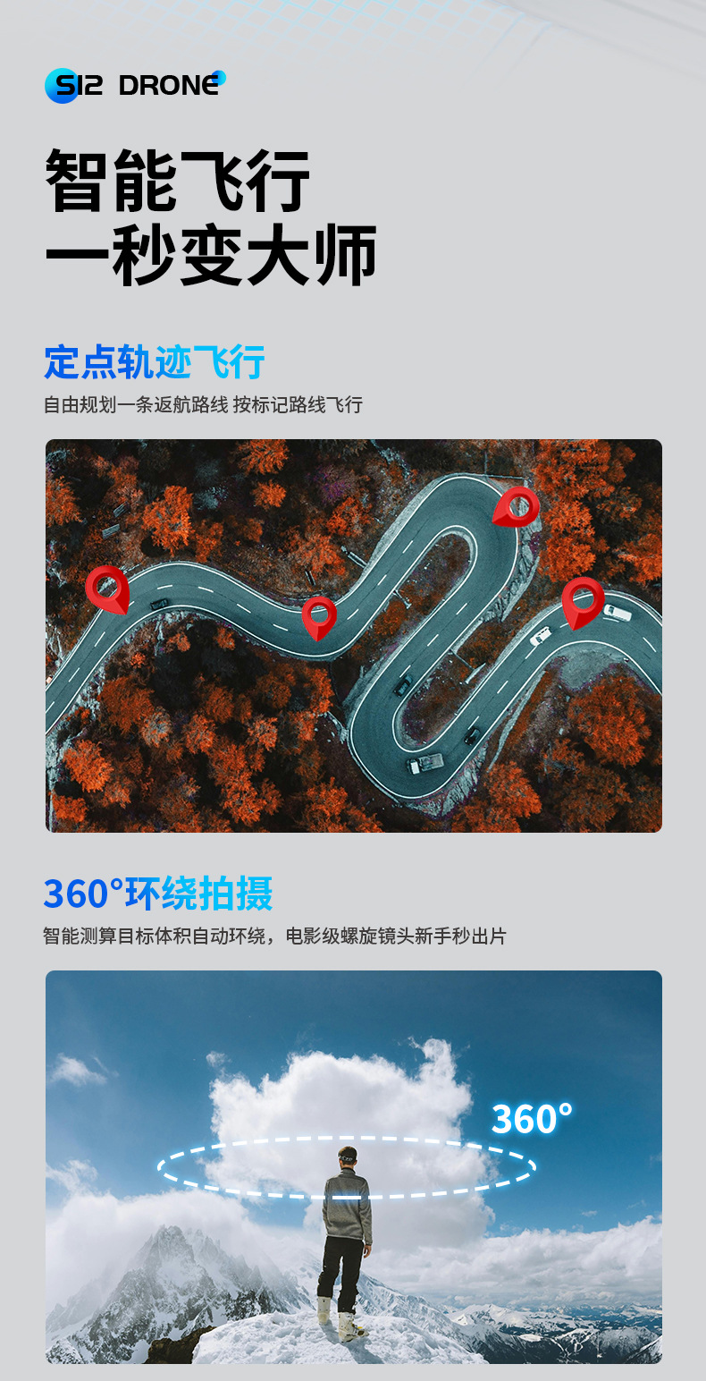 • S12 화면 제어 버전 [GPS 포지셔닝 + 적외선 장애물 회피 + 브러시리스 광학 흐름 8K-720P]