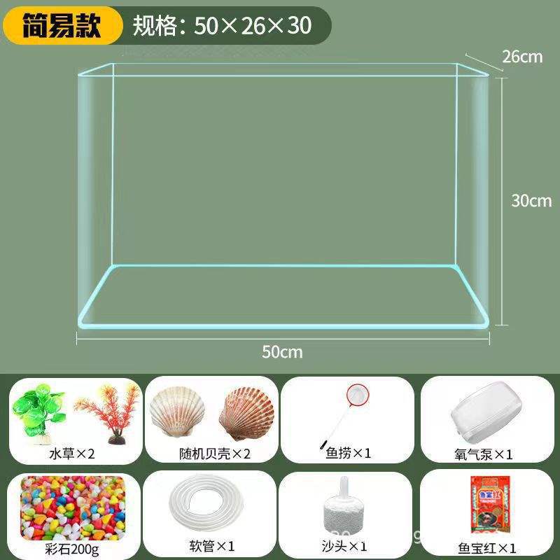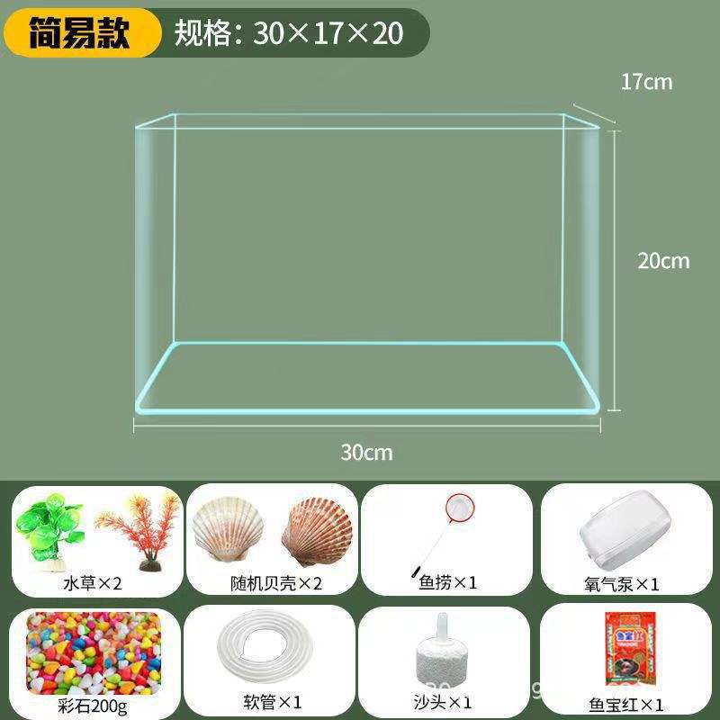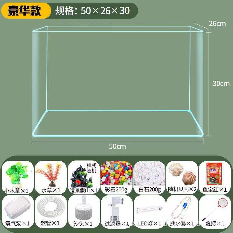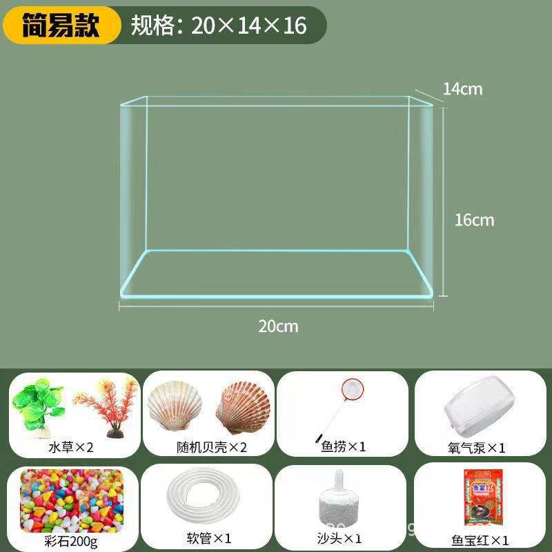 작은 물고기 탱크 조명 거실 통합 산소 투명 금붕어 탱크 조경 뜨거운 구부러진 유리 크리 에이 티브 수족관 벨트스토어 가기