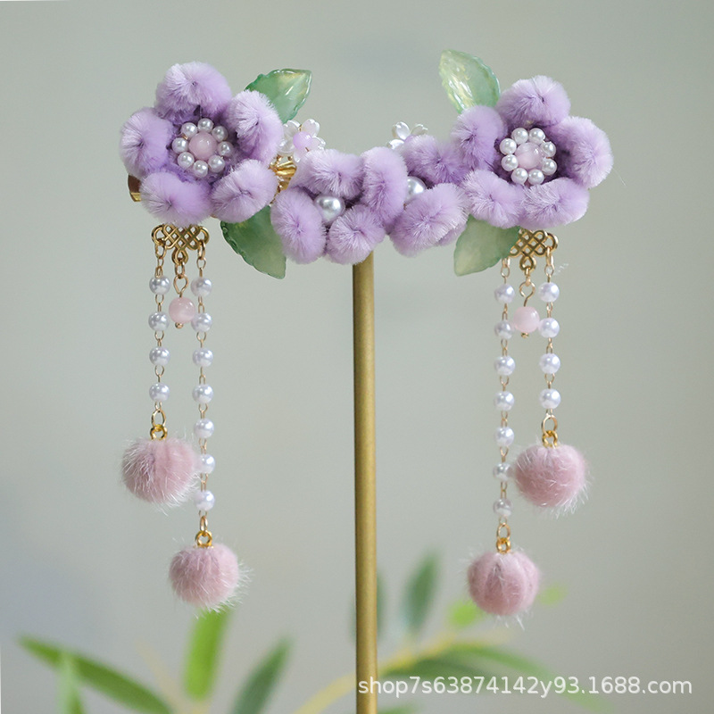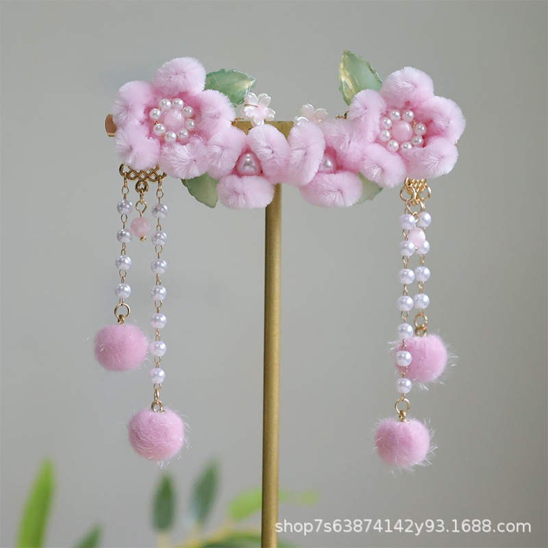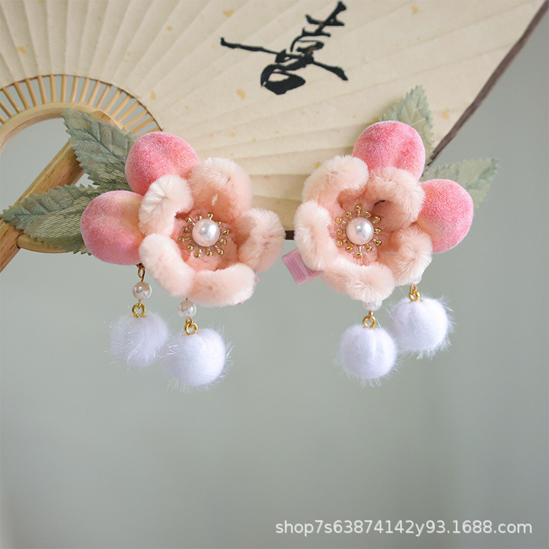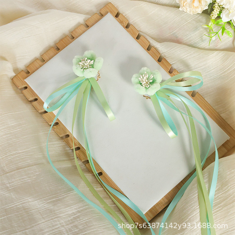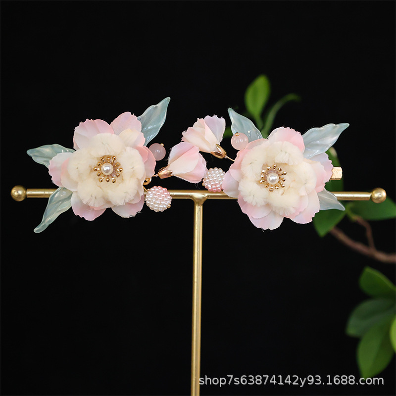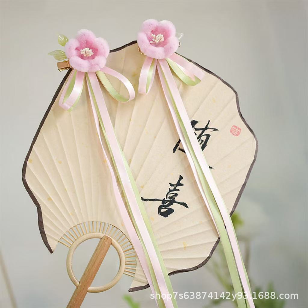 고풍스러운 벨벳 꽃 머리핀, 멋진 헤어 액세서리, 꽃 모양 머리 장식, 상큼한 한복 리본, 옆머리핀 장식품