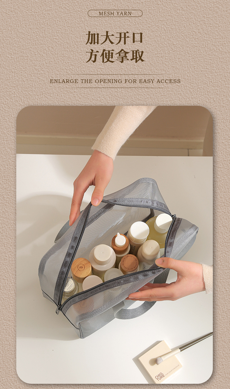 메쉬 휴대용 화장실 가방 휴대용 여행 화장품 가방 여성용 메쉬 보관 가방 대용량 메쉬 통기성 보관 가방