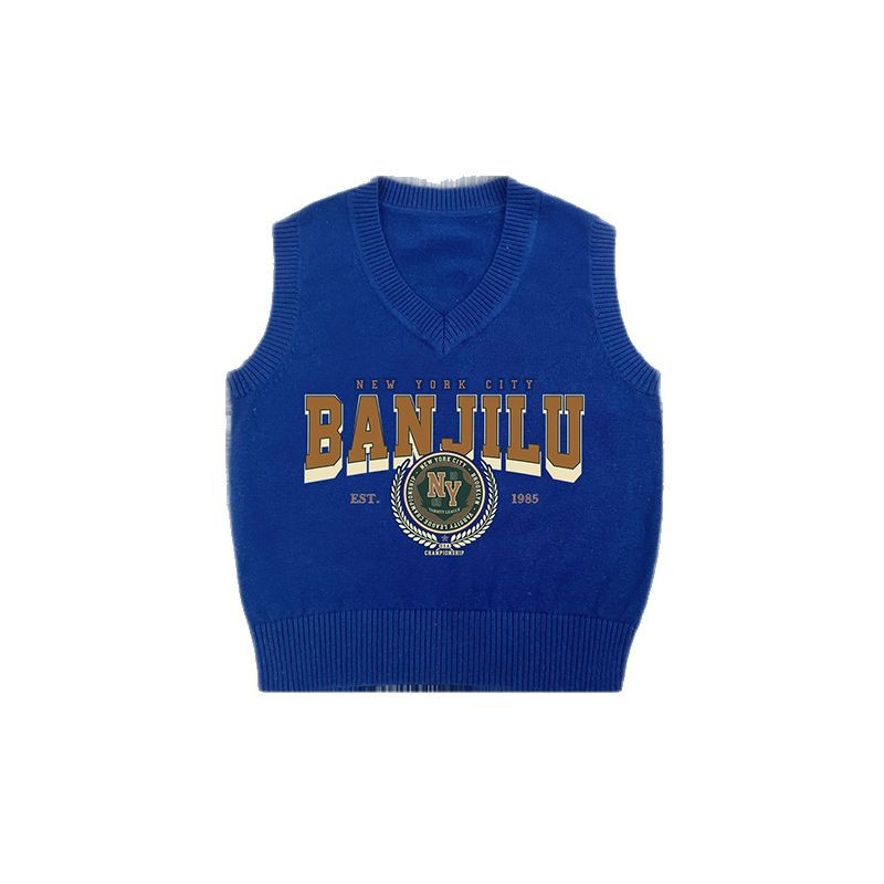 순면 봄, 가을 어린이 소형, 중형 및 대형 어린이 캐주얼 영국 따뜻한 조끼 봄 의류 아동용 모직 스웨터 조끼스토어 가기
