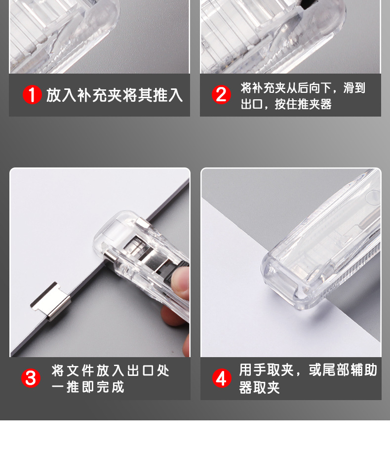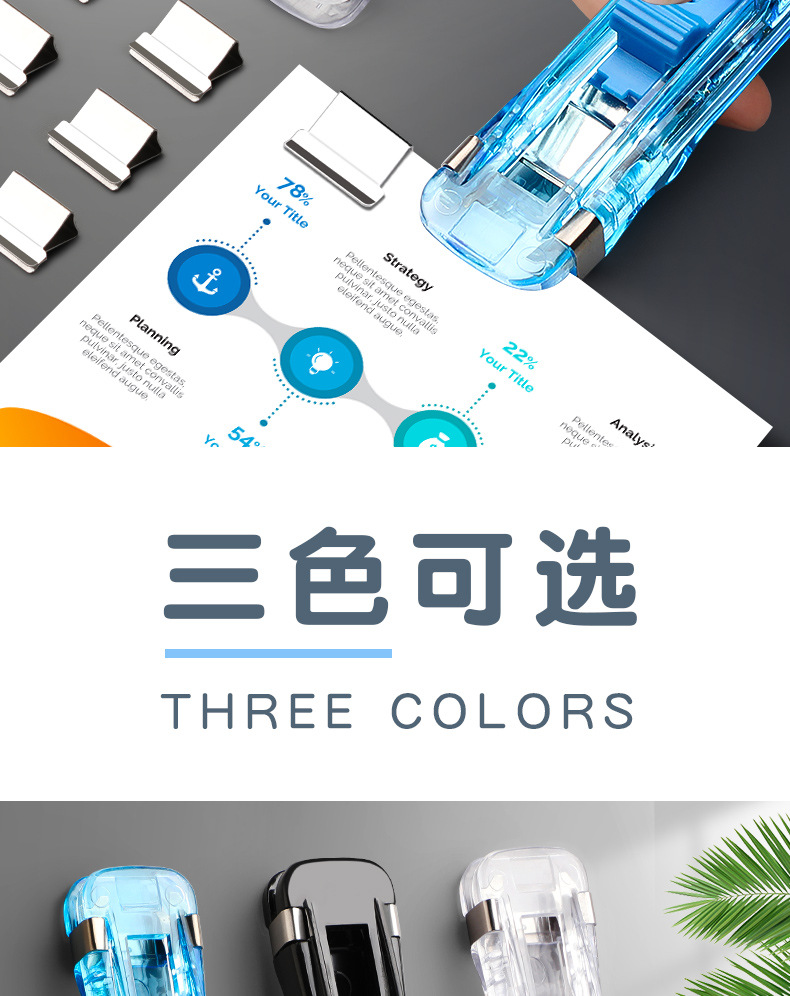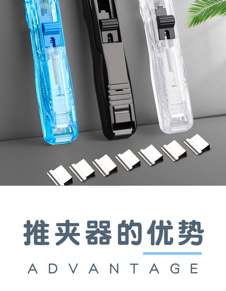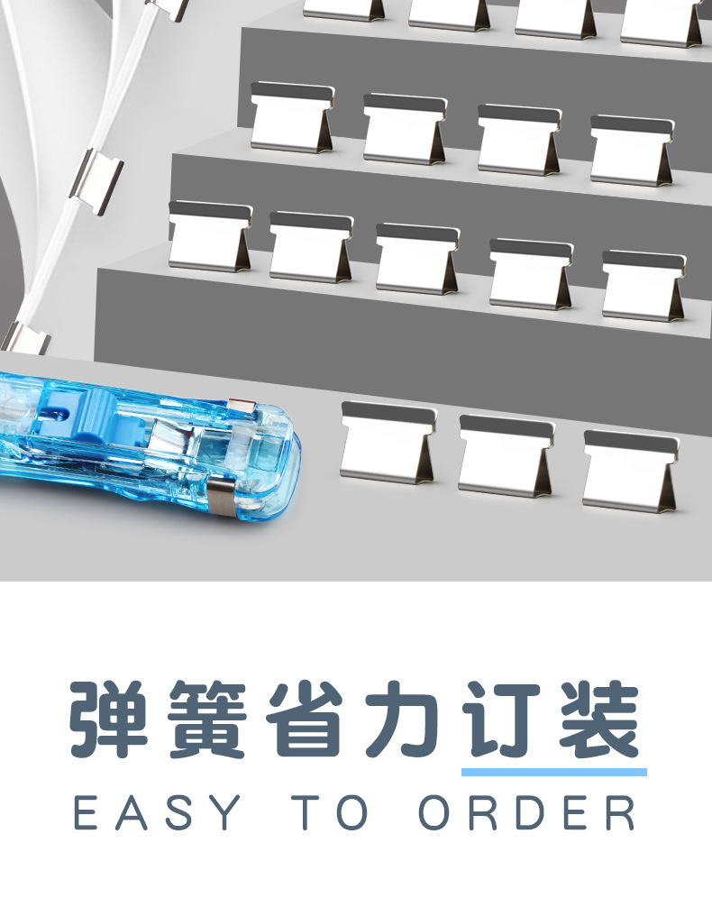 무봉제 스테이플러, 문구 스테이플러, 무못, 노동 절약형 푸시 클립, 폴더, 투명 밀봉, 무바늘 스테이플러