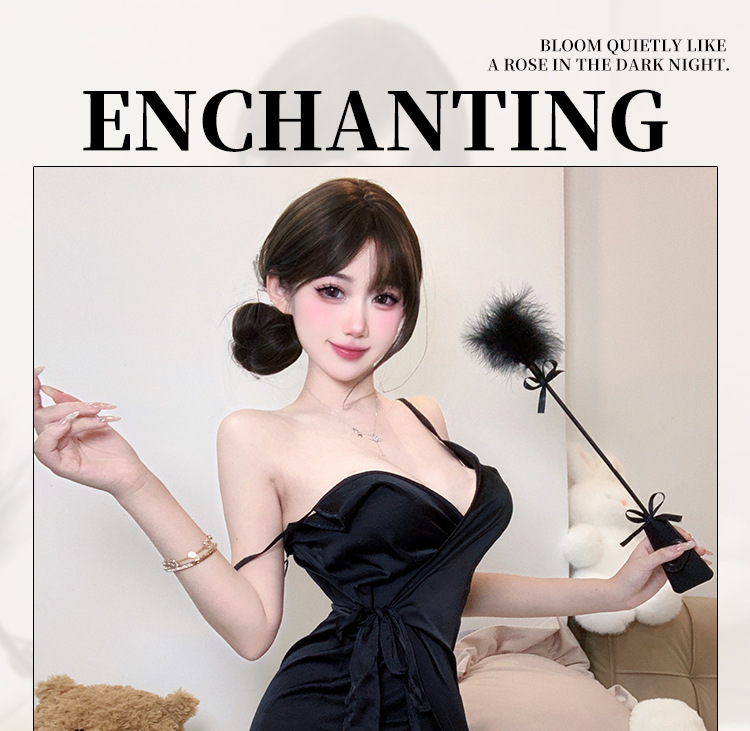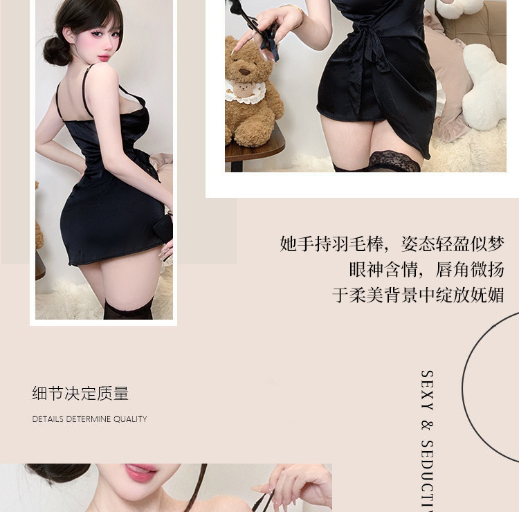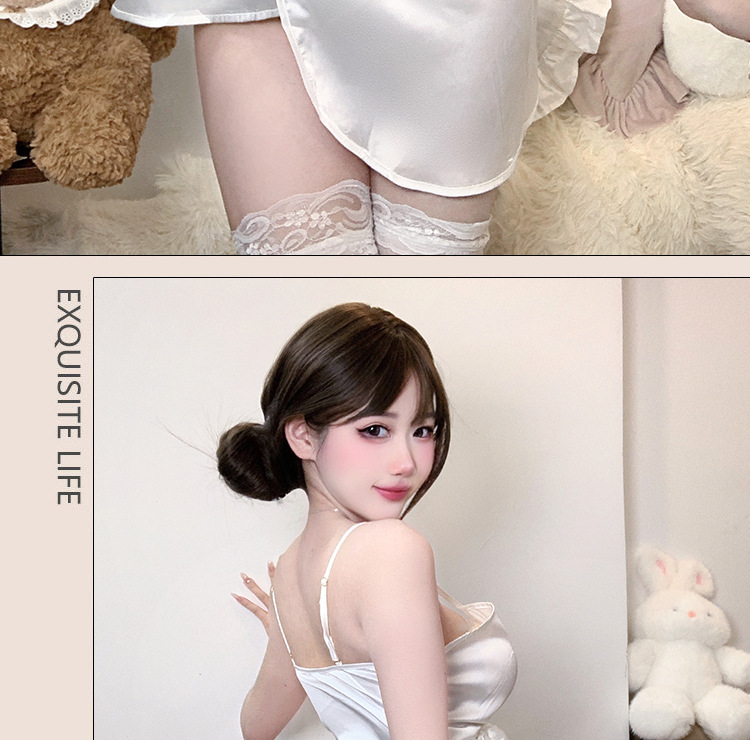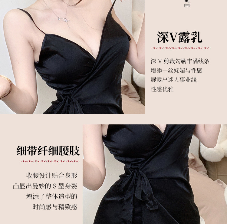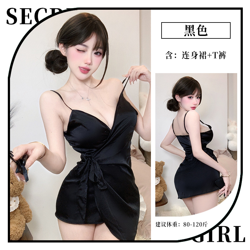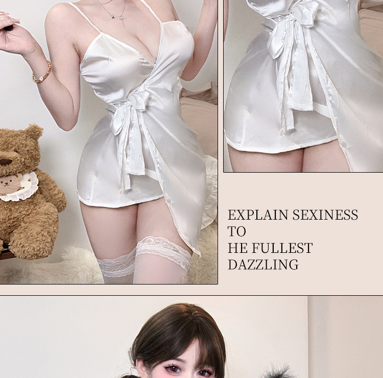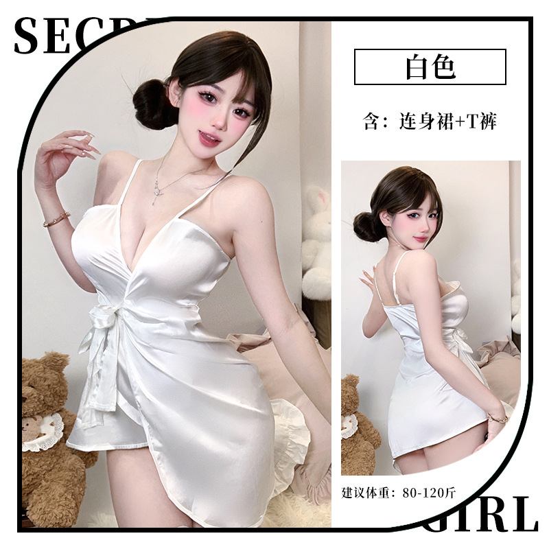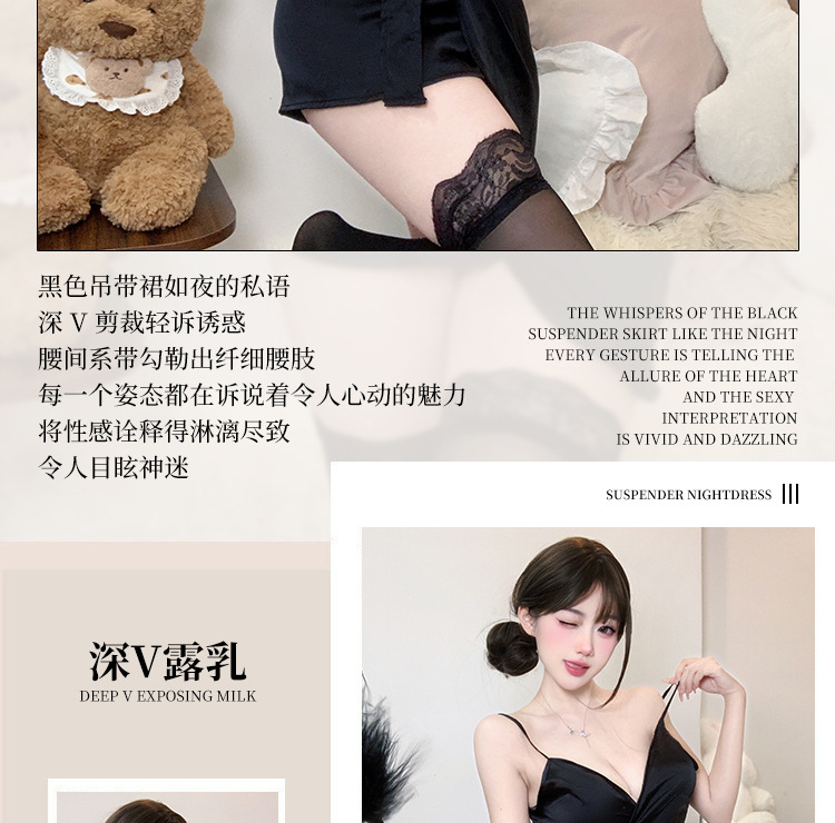 섹시한 잠옷 딥 V 레이스 업 슬림 피트 퓨어 러브 서스펜더 나이트 가운 퓨어 러브 핫 힙 커버 홈웨어 세트 8252