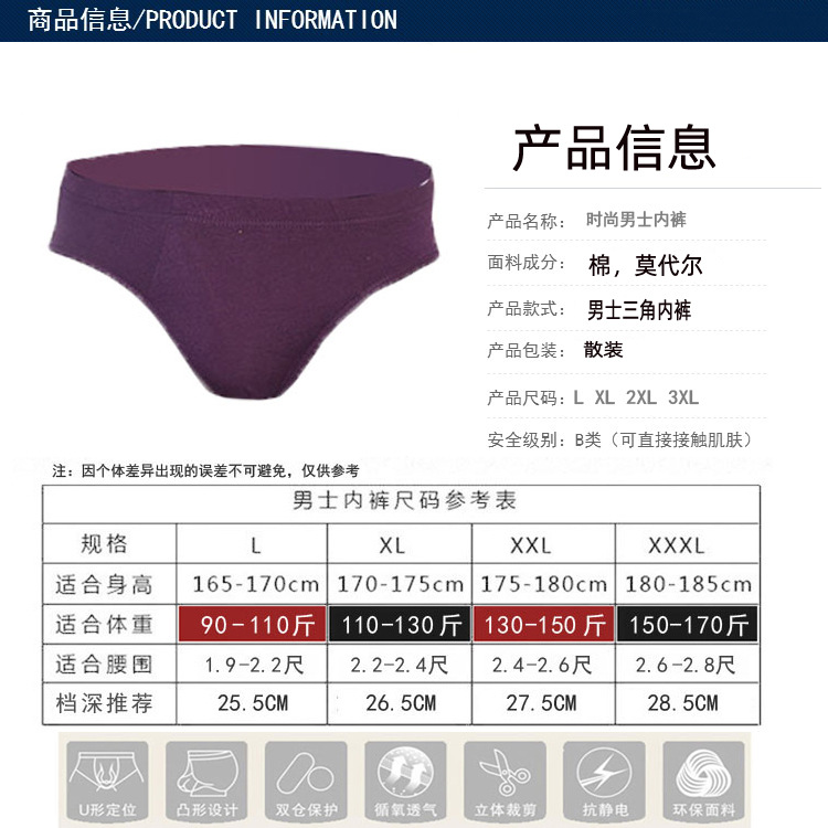 솔리드 컬러 남성 삼각형 통기성 모달 섹시한 중간 허리 남성 속옷 팬티 재고 도매스토어 가기