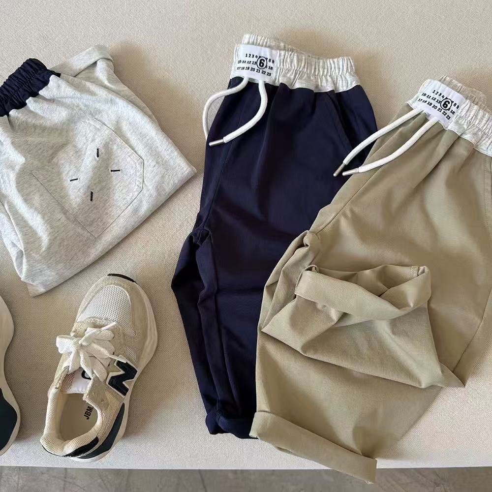 2025 여름 새로운 스타일 얇은 어린이 스트레이트 다리 바지 소년 캐주얼 바지 느슨한 큰 어린이 바지 세련된 패션 유행