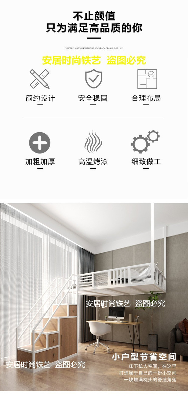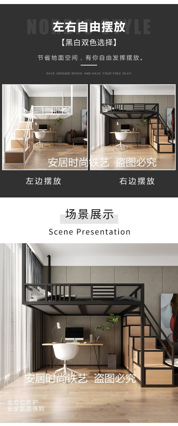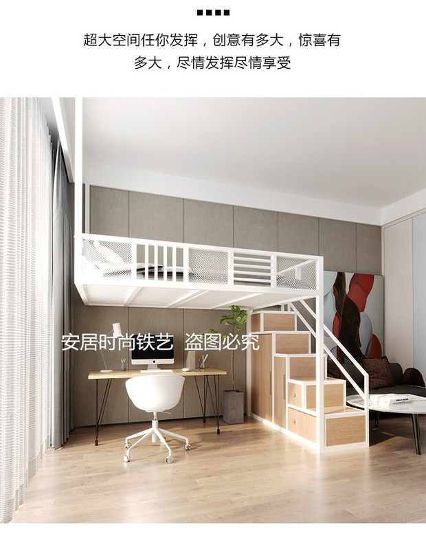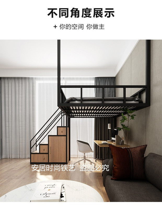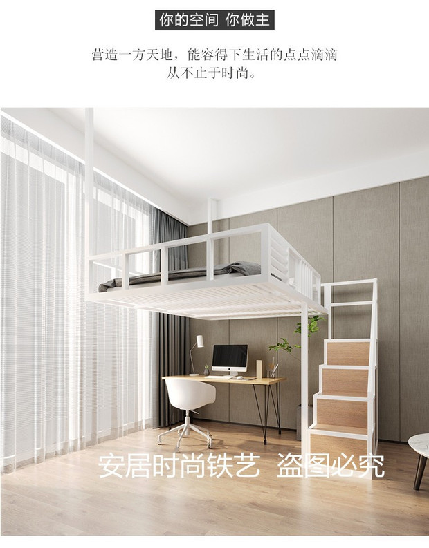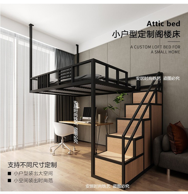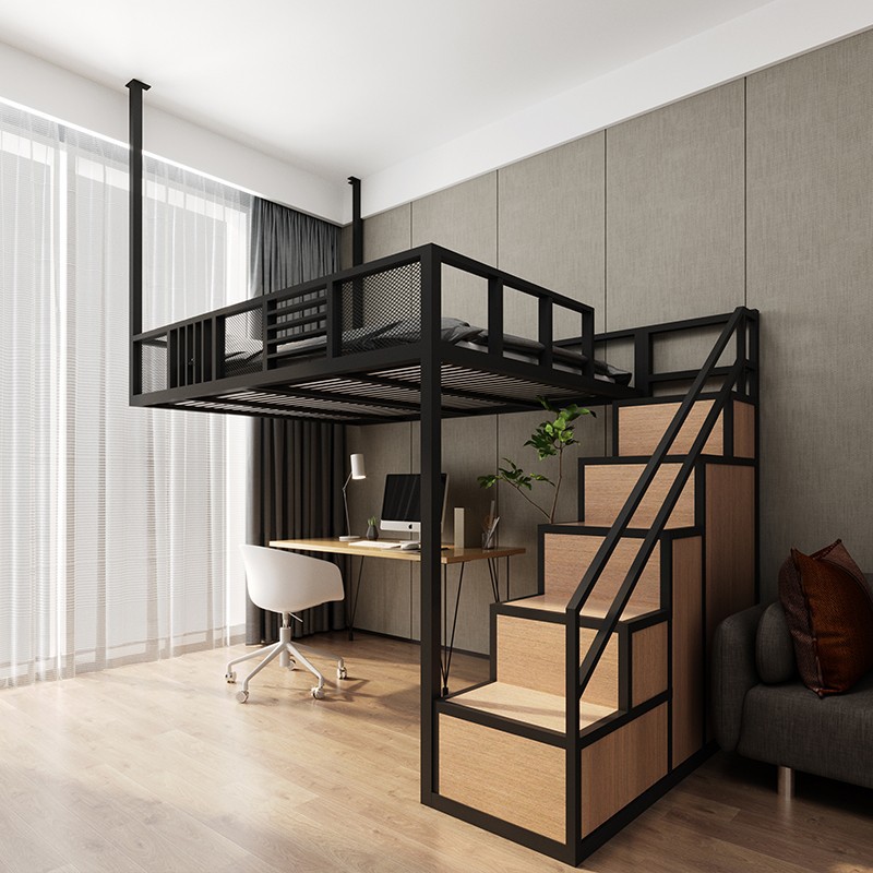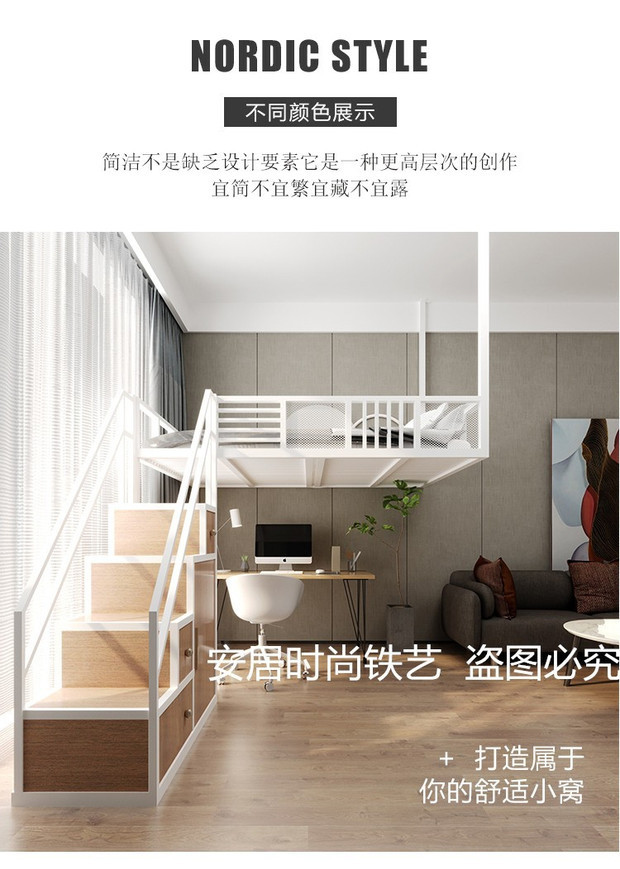 J ^ 북유럽 작은 아파트 철공 침대 다락방 침대 이중 2 층 침대 공간 절약 다기능 옷장 사다리 상승스토어 가기