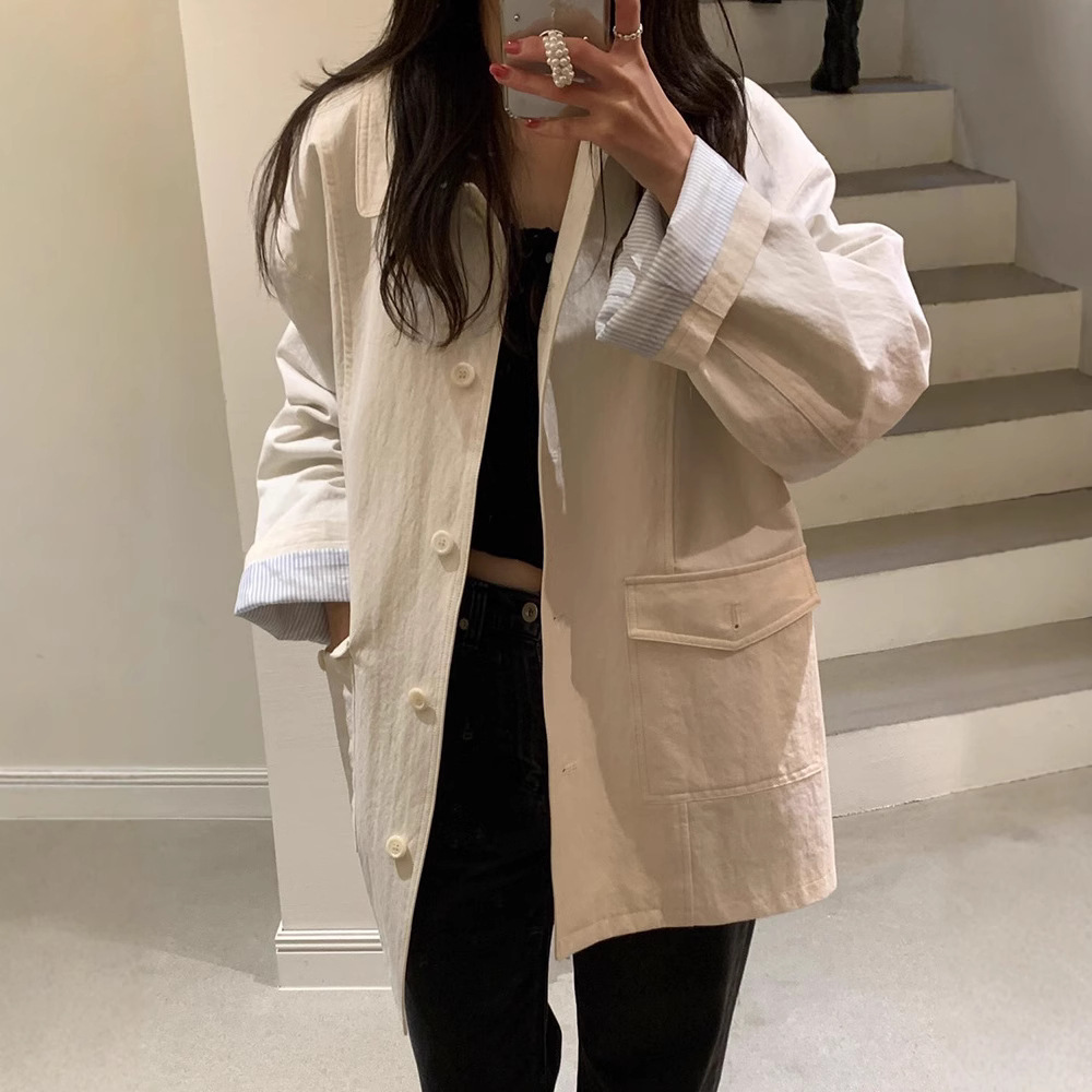 Tannat 기질 다재다능한 캐주얼 더블 포켓 재킷 2025 봄 여성 일일 통근 루즈 심플 재킷스토어 가기