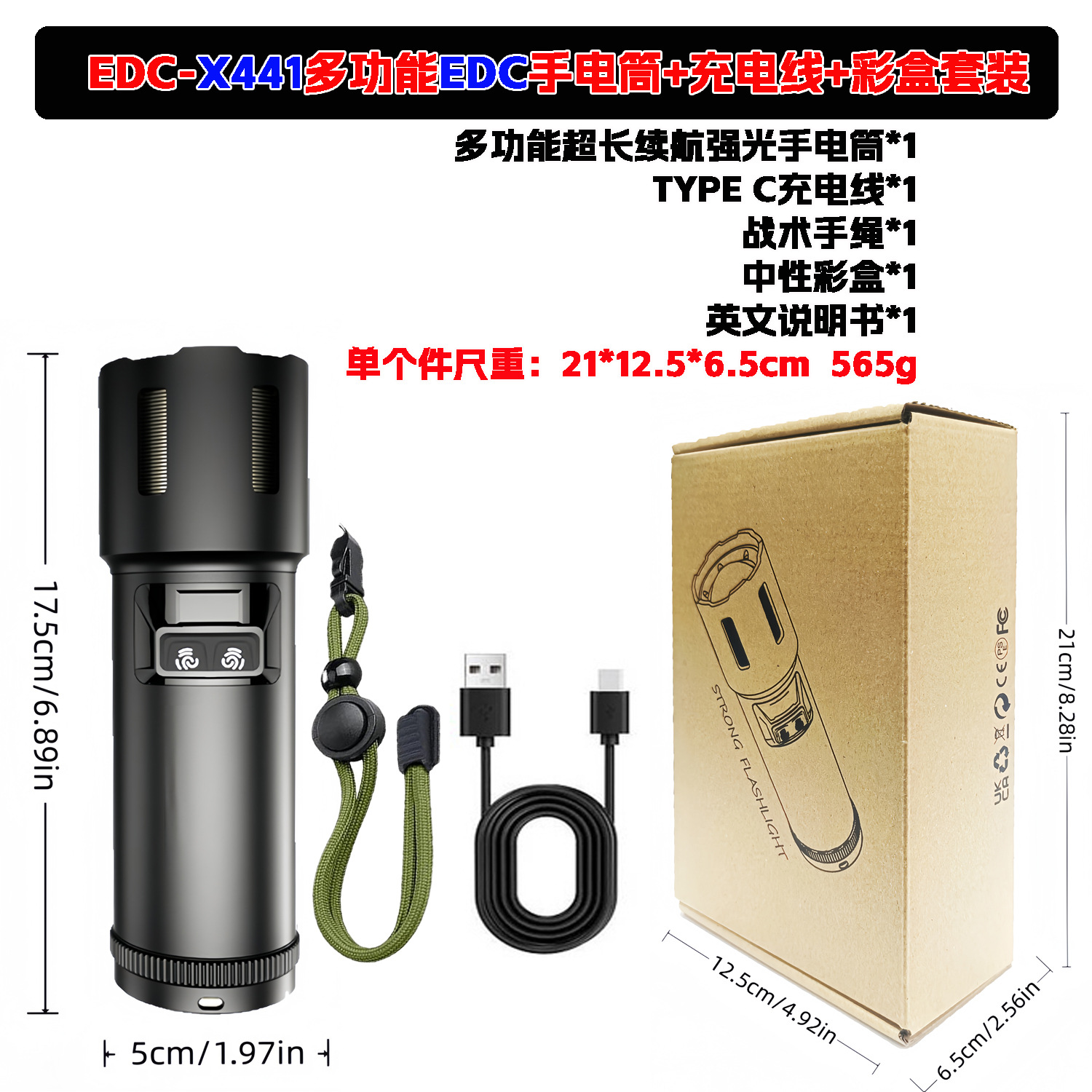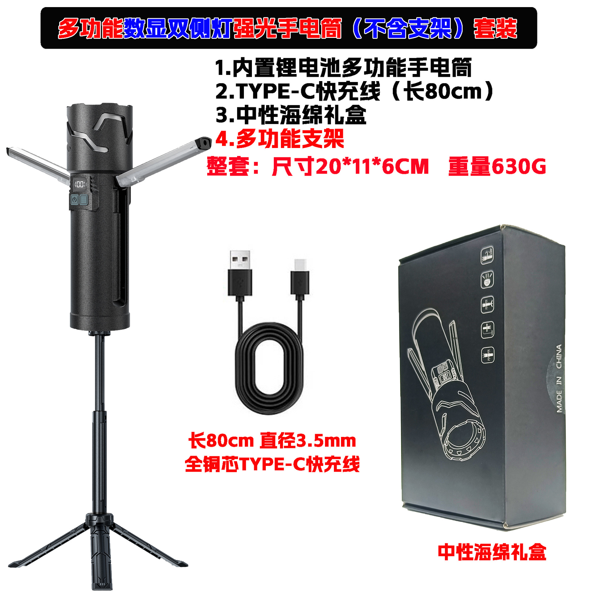 • EDC-X450 신형 다기능 백색 레이저 손전등 야외 강력 충전식 측면 라이트 + 거치대 세트