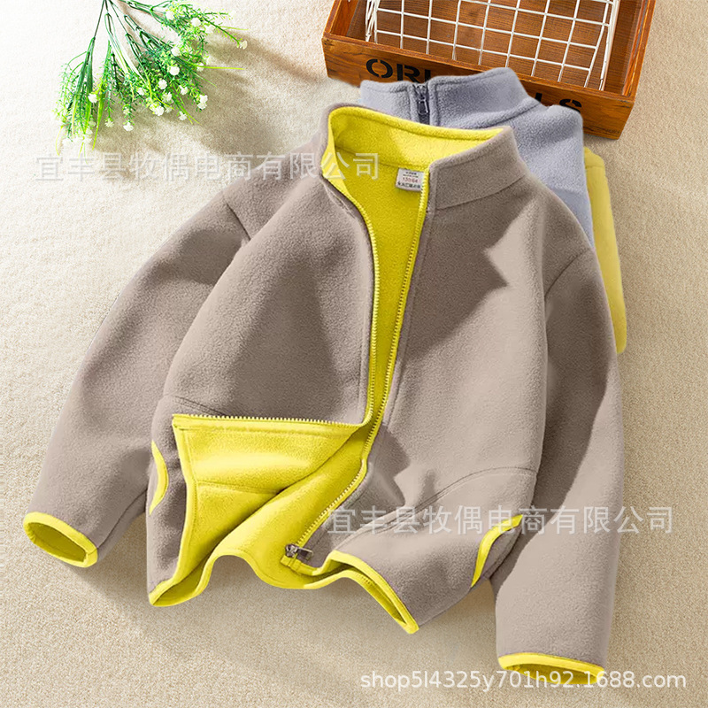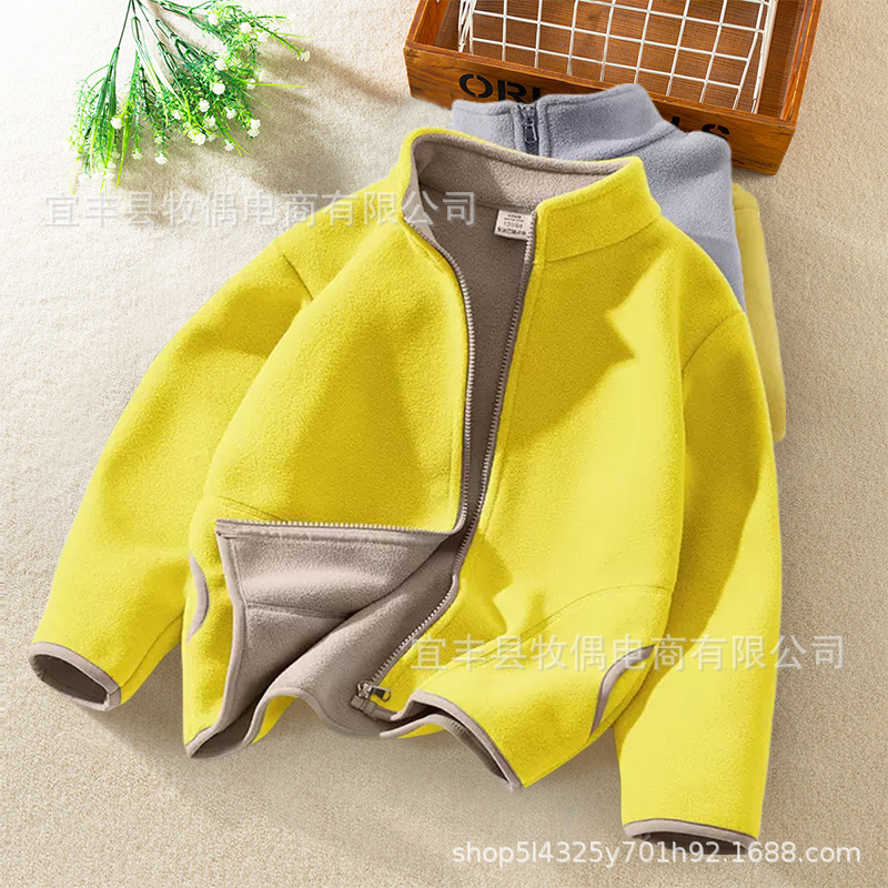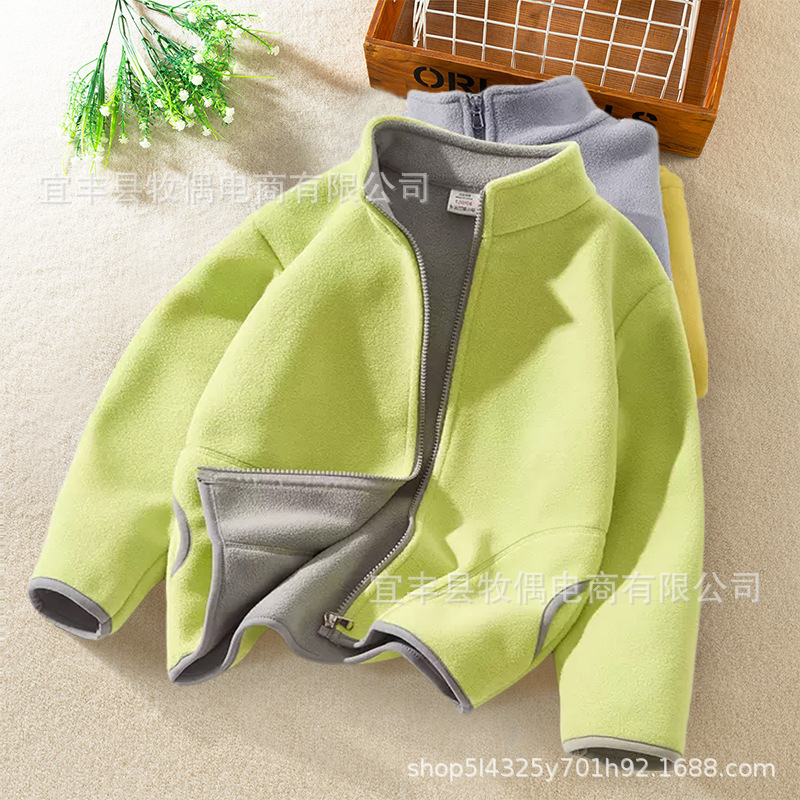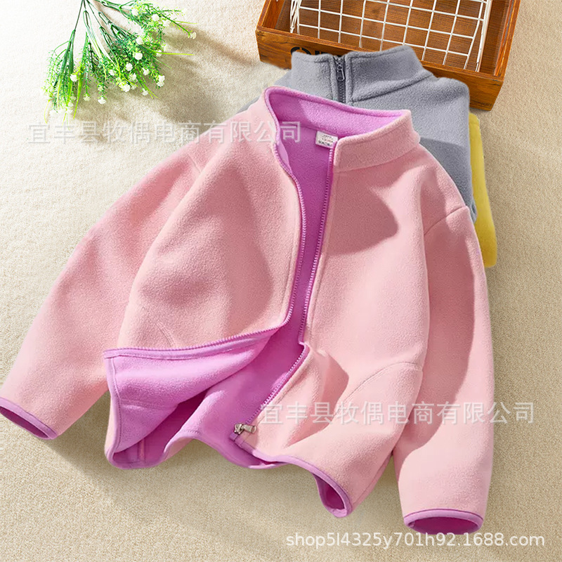 아동용 폴라 플리스 재킷, 가을 겨울용, 단색, 남아 여아용, 핑크색, 세련되고 패셔너블한, 기모 안감, 트렌디한 숏 스타일스토어 가기
