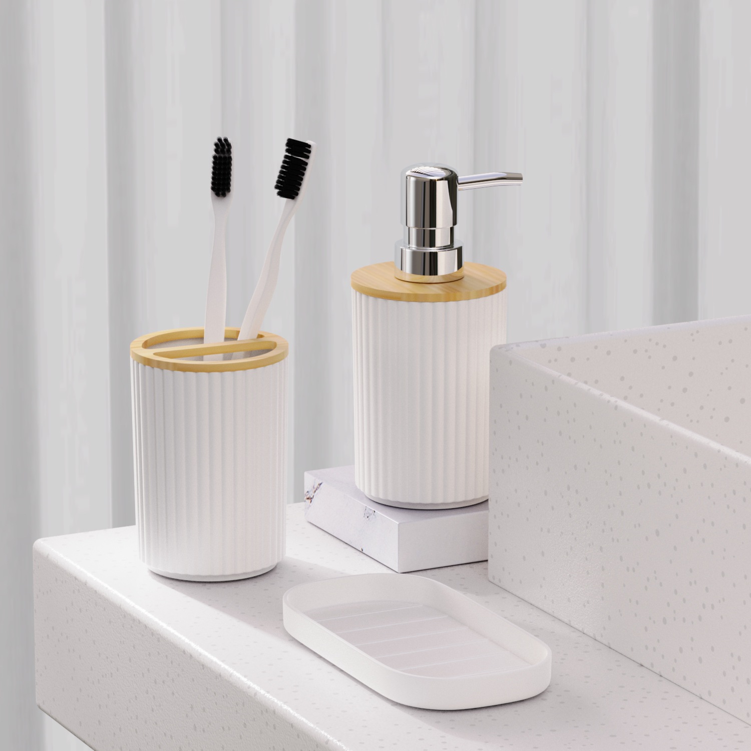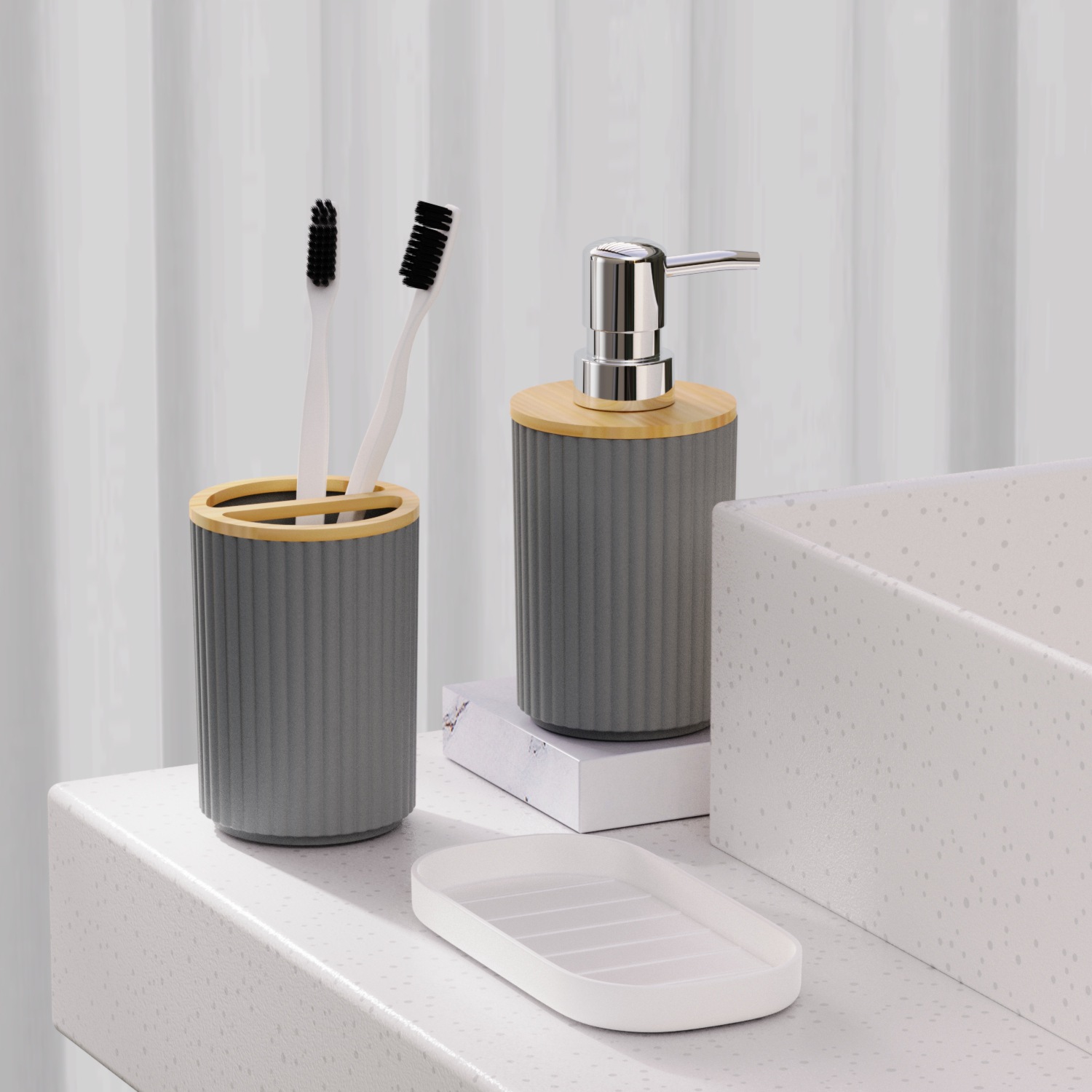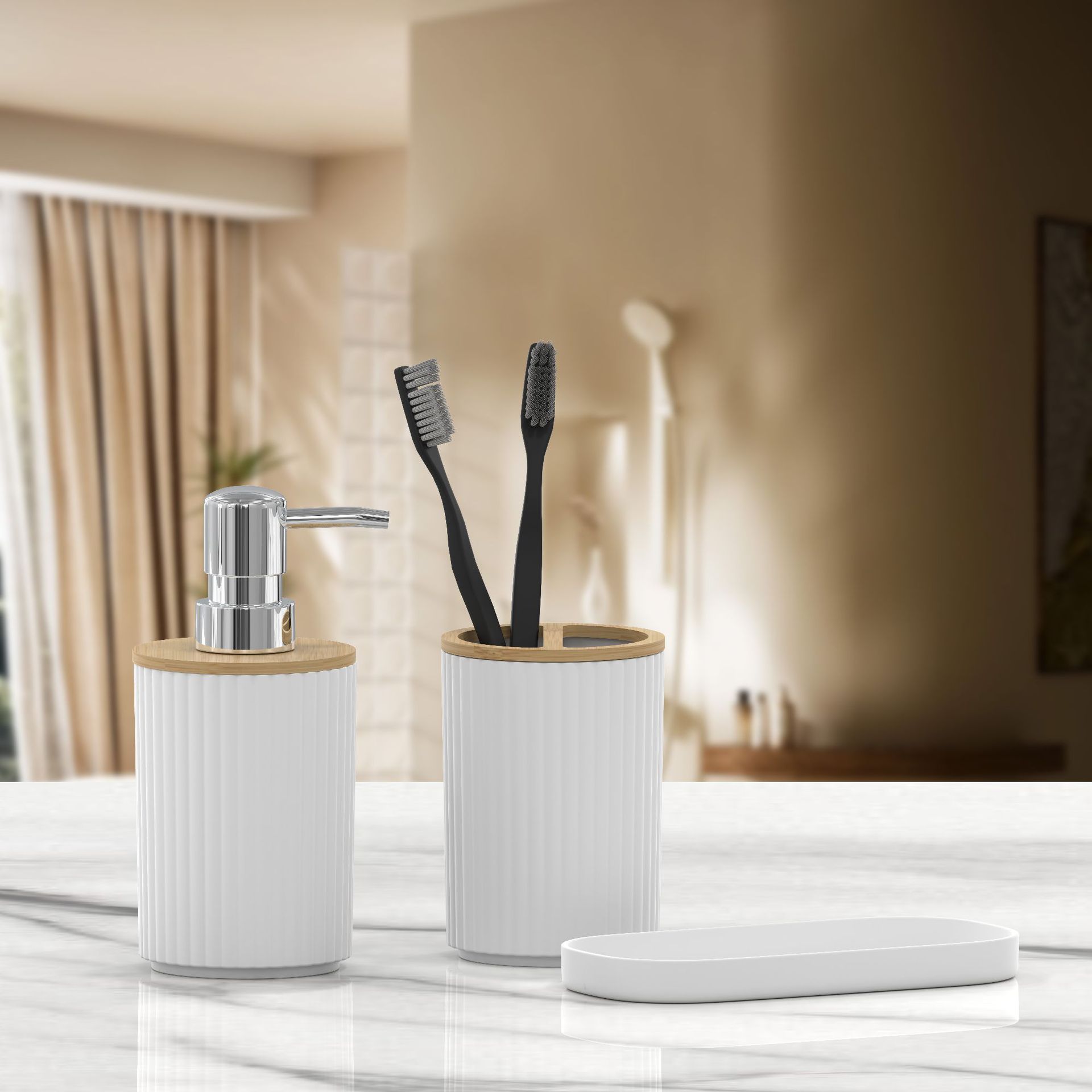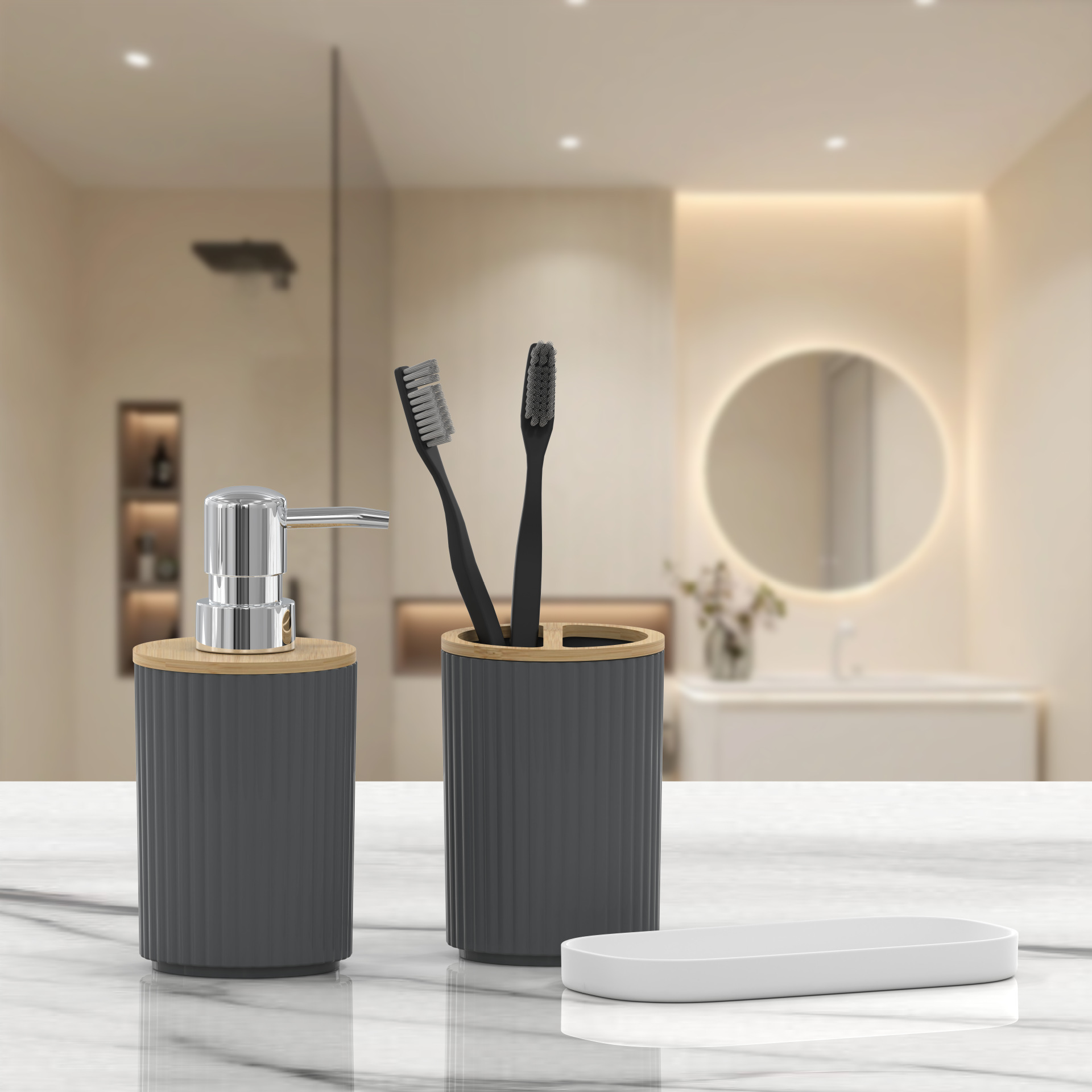 호텔 B & B 대나무 나무 장식품 3 조각 욕실 용품 세트 욕실 병 화장실 칫솔 선반 휴지통