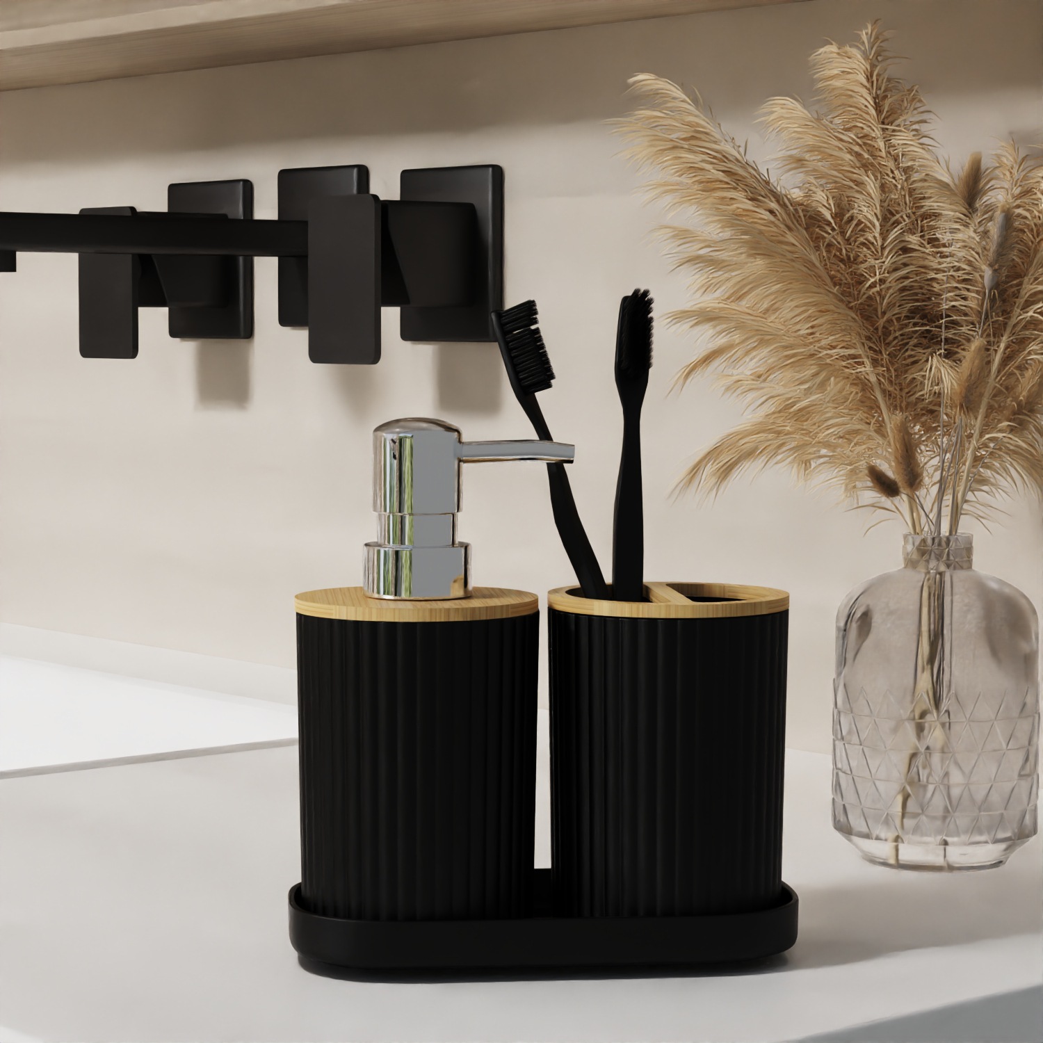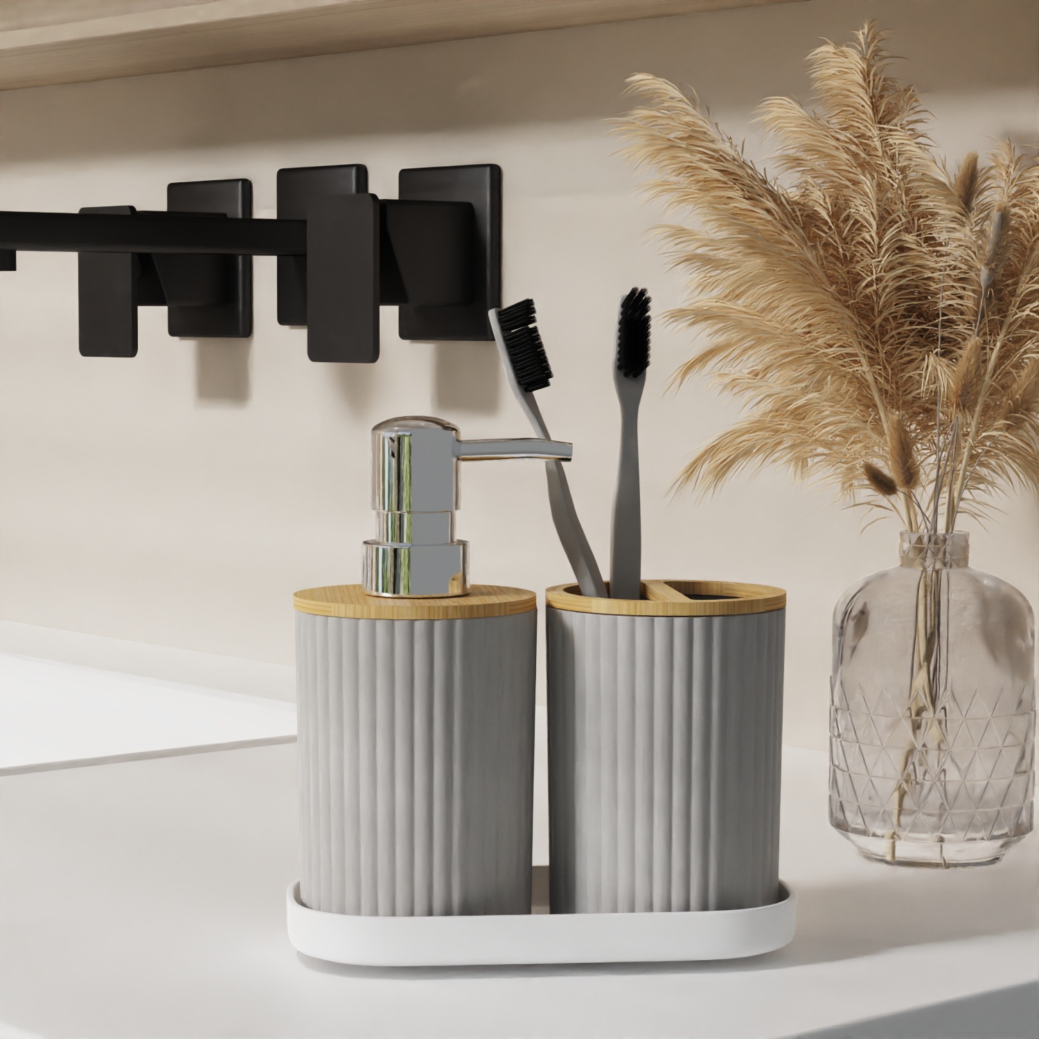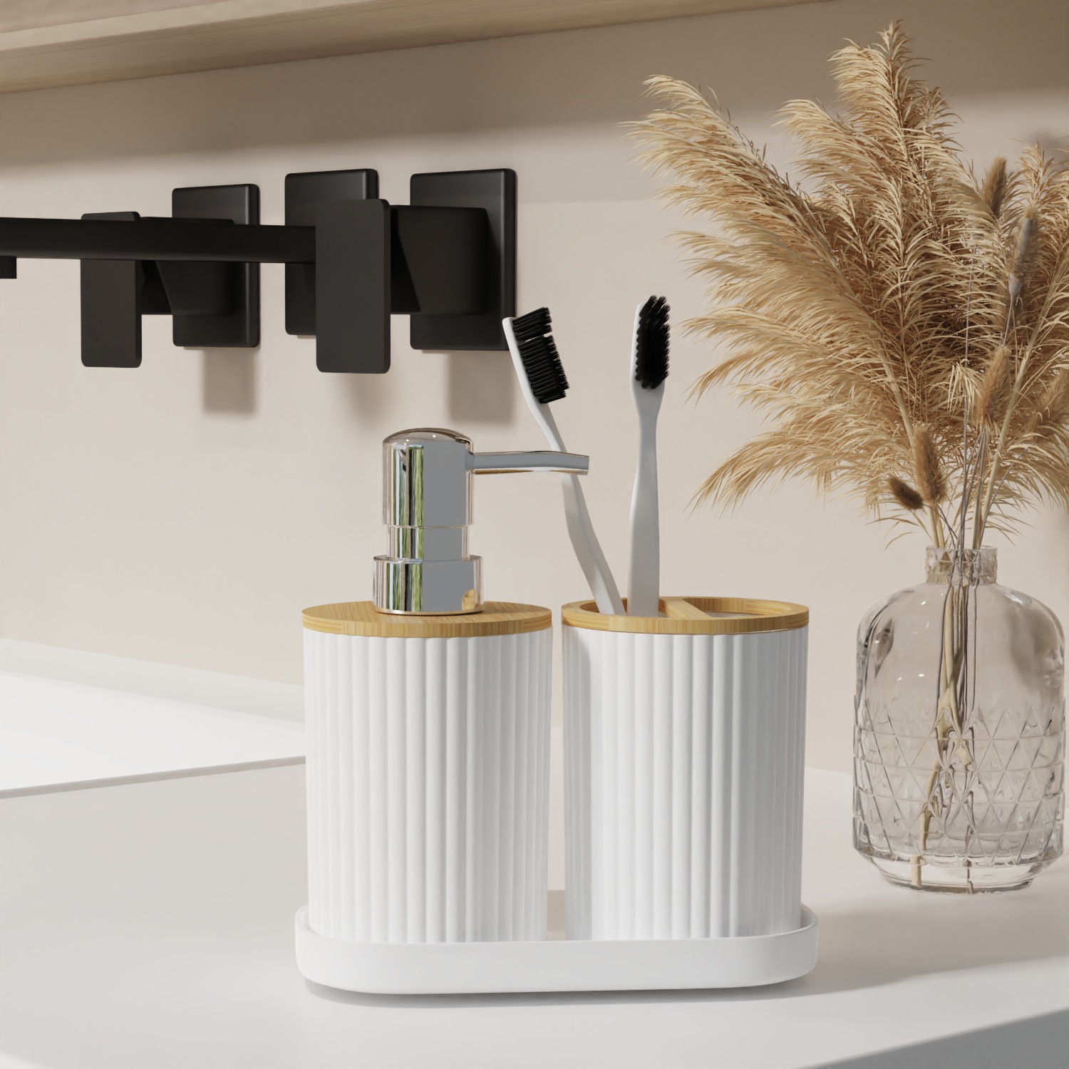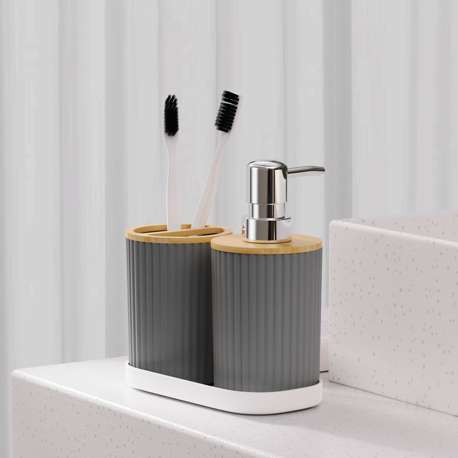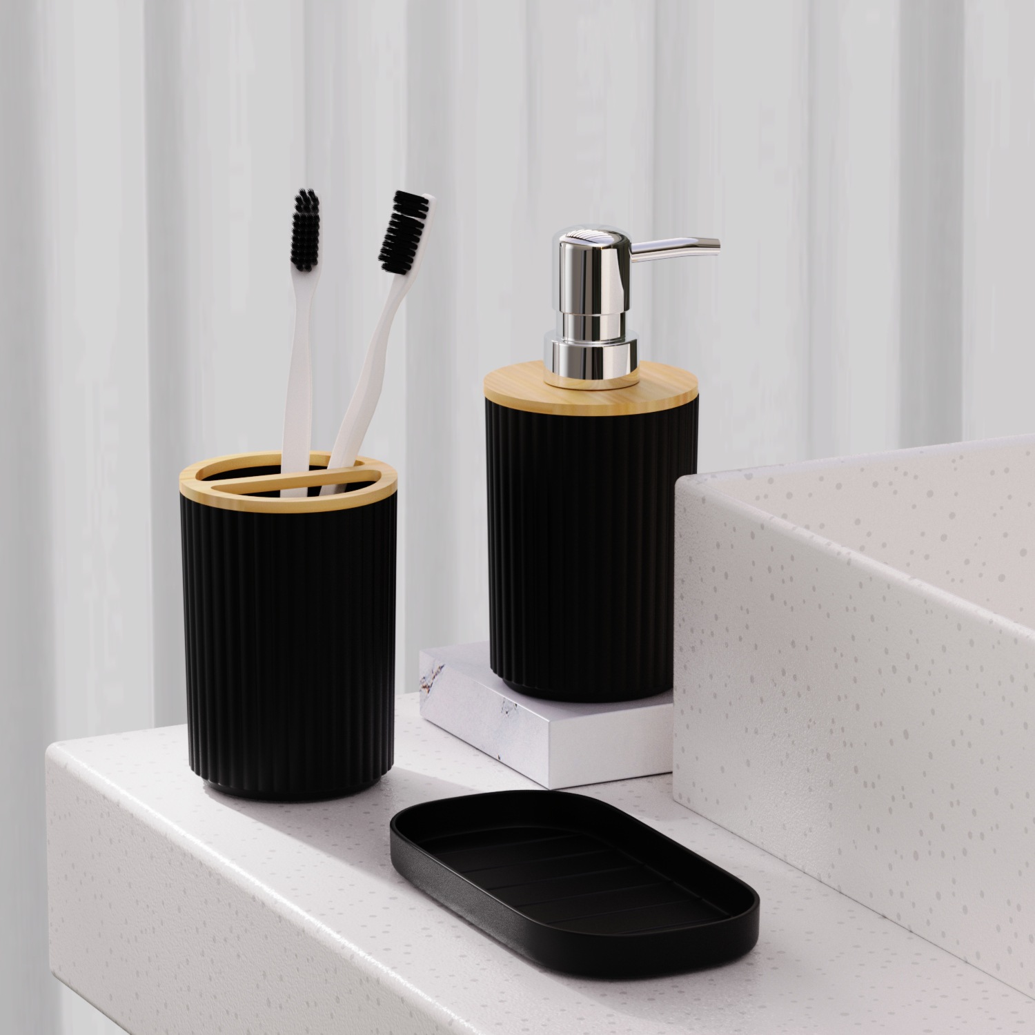 호텔 B & B 대나무 나무 장식품 3 조각 욕실 용품 세트 욕실 병 화장실 칫솔 선반 휴지통