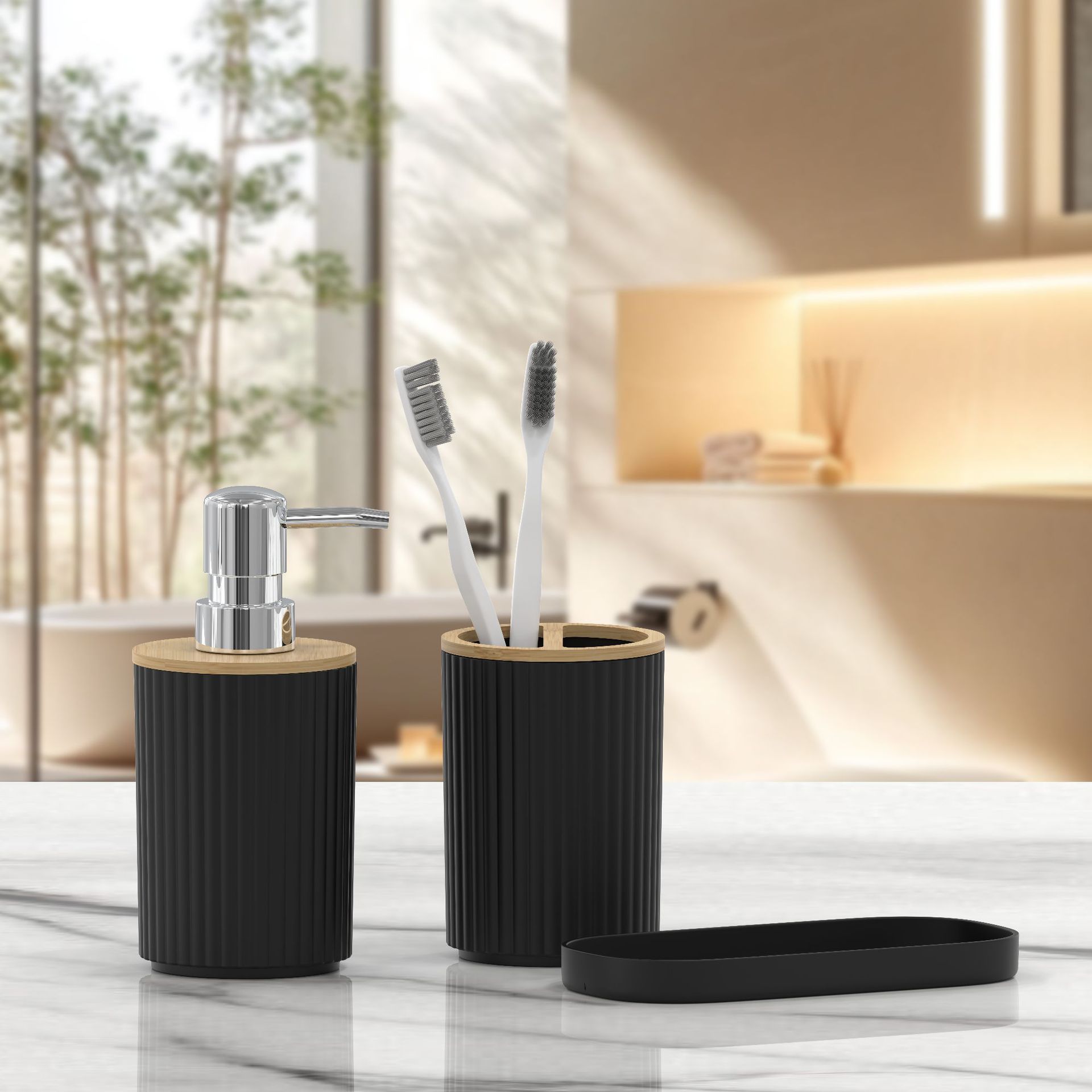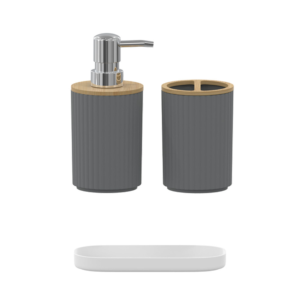호텔 B & B 대나무 나무 장식품 3 조각 욕실 용품 세트 욕실 병 화장실 칫솔 선반 휴지통스토어 가기
