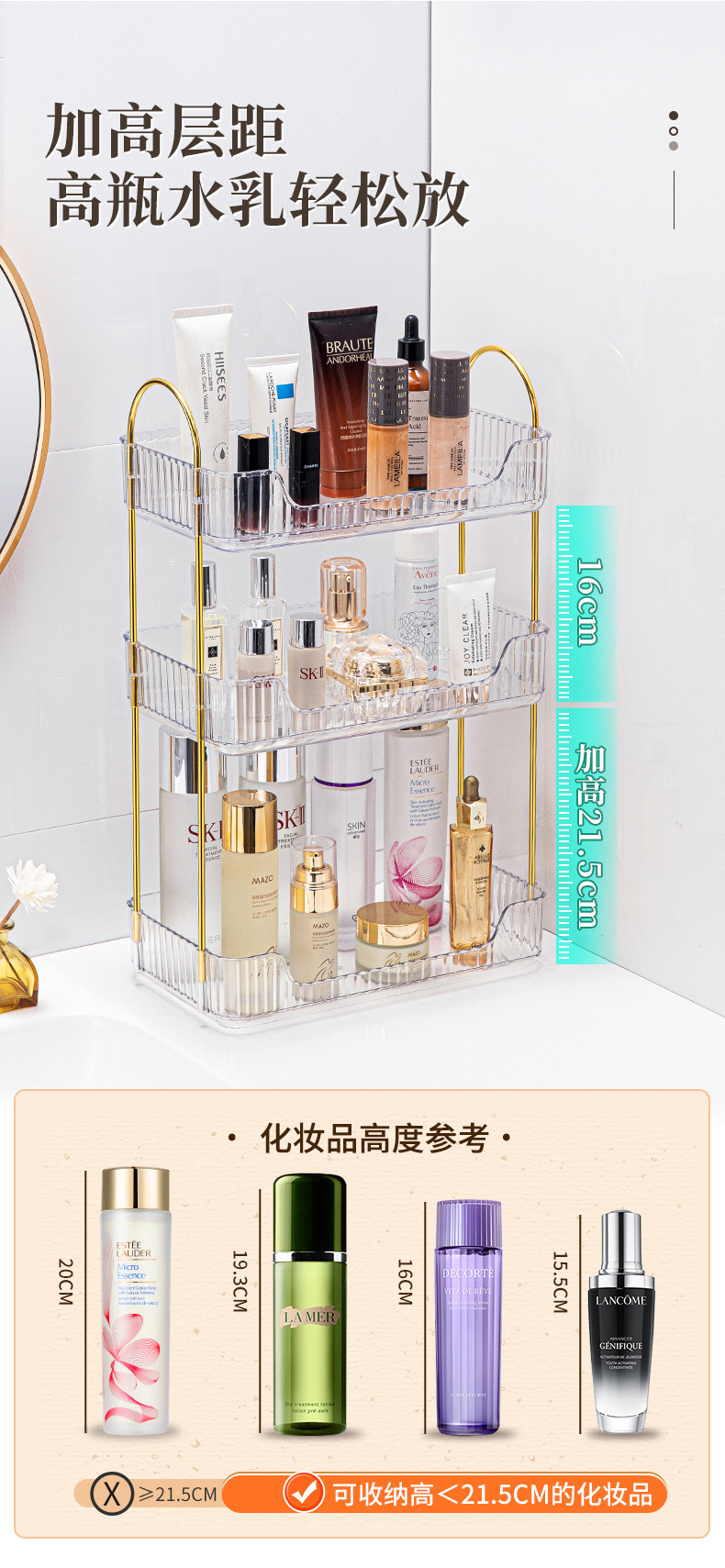 卫生间置物架桌面化妆品收纳盒浴室金属卧室饰品厨房收纳架亚马逊