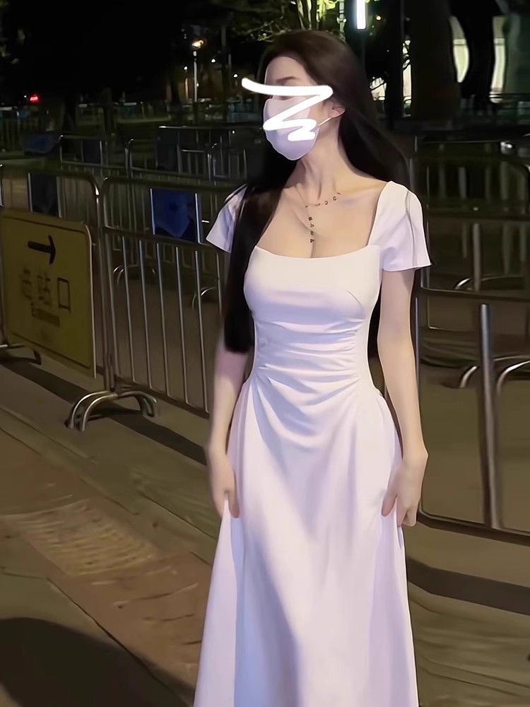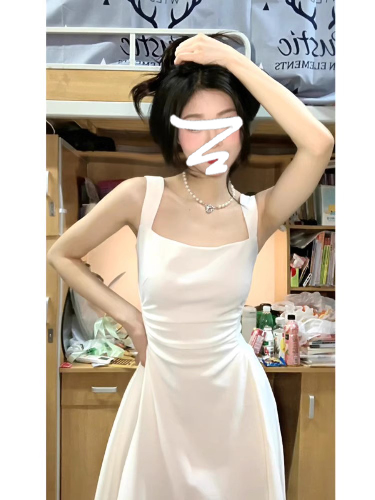 프랑스 하이 엔드 퍼스트 러브 화이트 슬링 원피스 여성 여름 2025 새로운 젠틀 화이트 달빛 스커트 롱 원피스스토어 가기