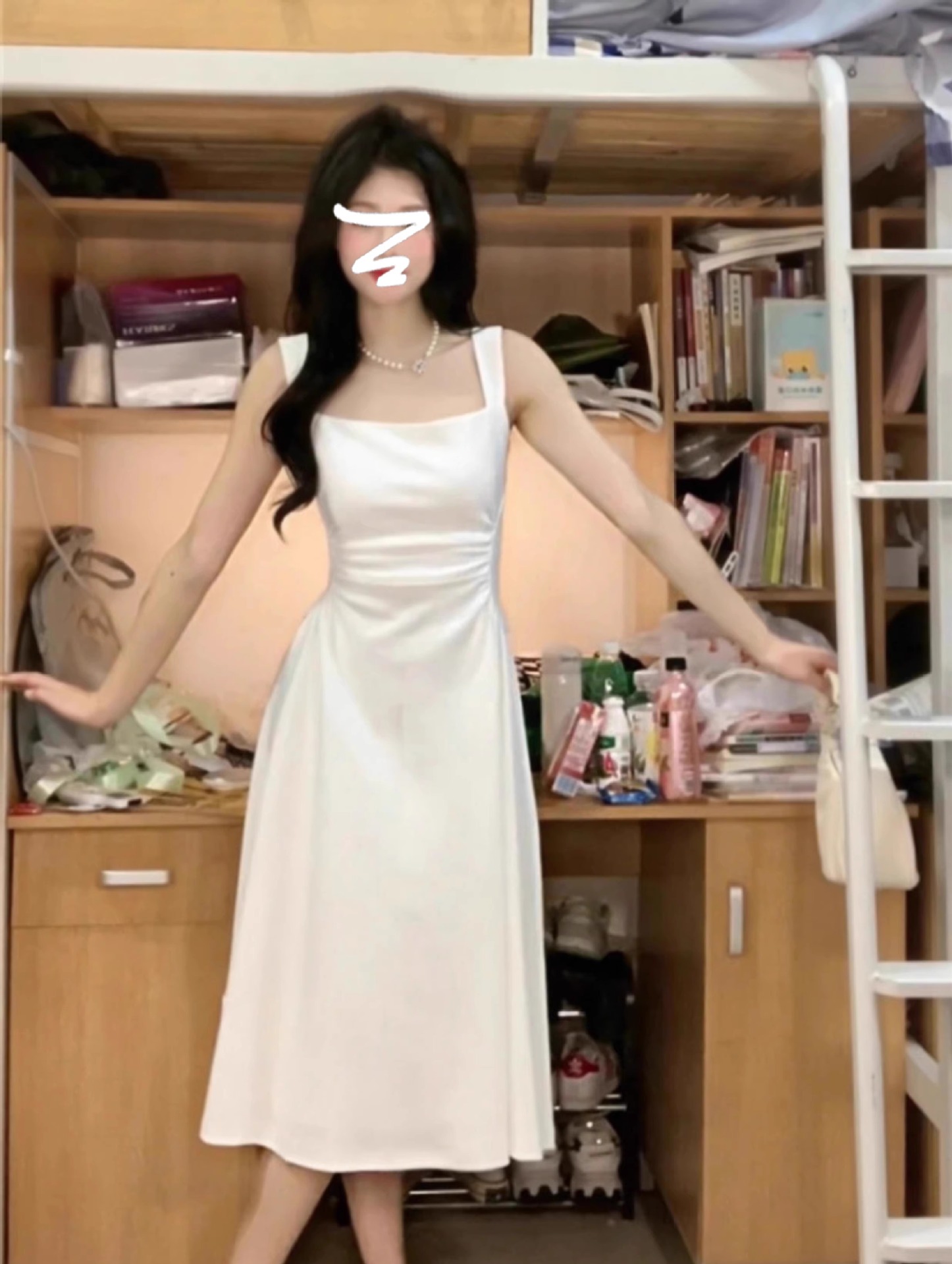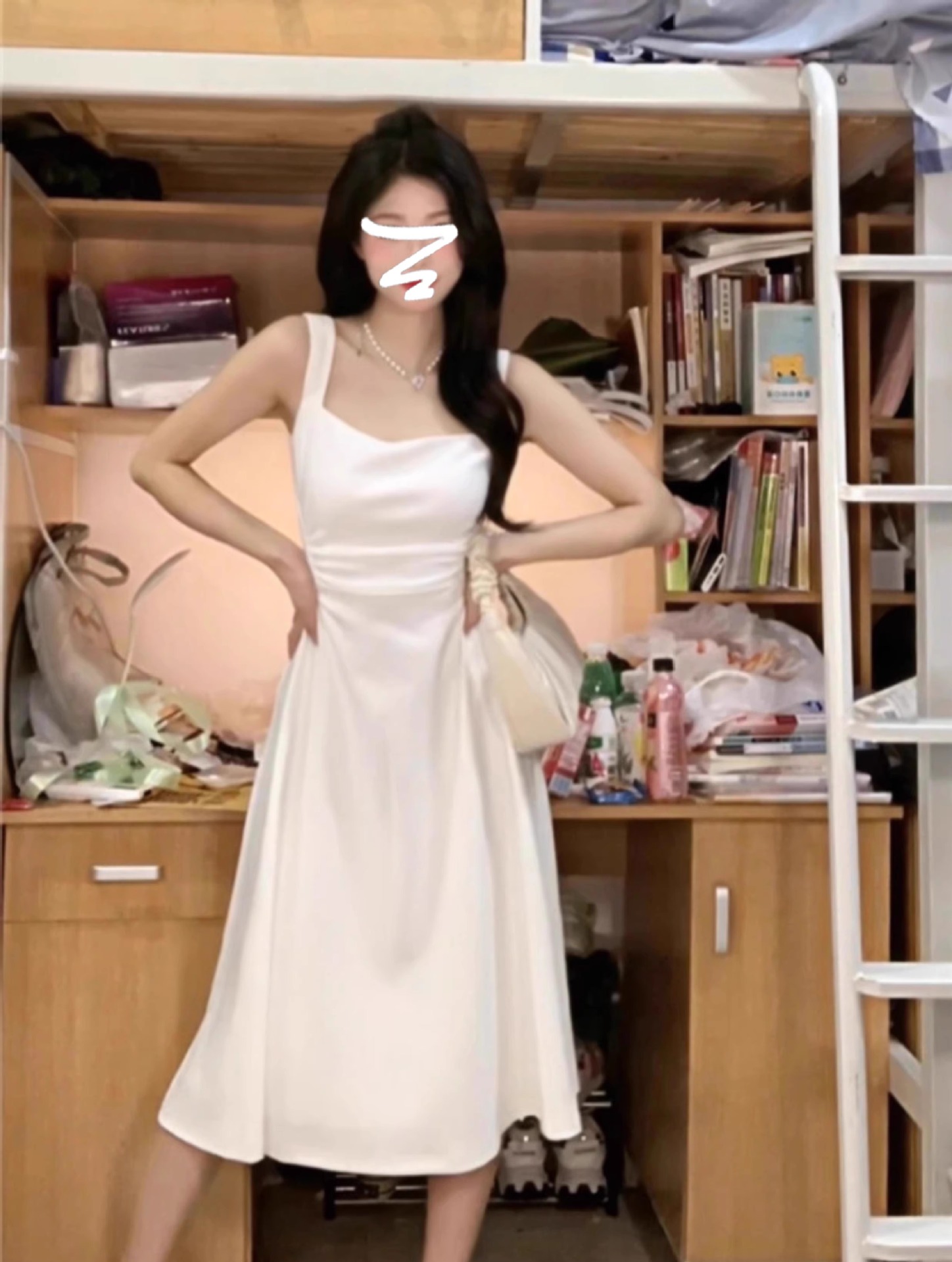 • 흰색 서스펜더 드레스