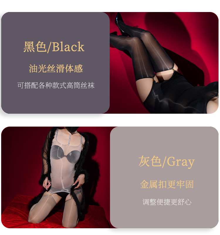 Qing He Oil Light "Mei" Silk Stockings Jaysuit 섹시한 전신 울트라 얇은 슬링 교수형 넥 롱 튜브 재미 오픈 블랙 실크스토어 가기