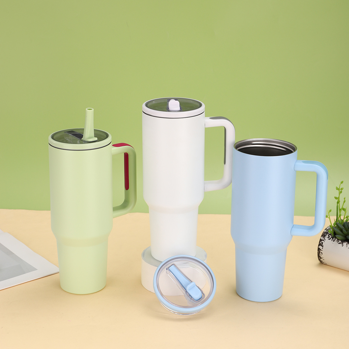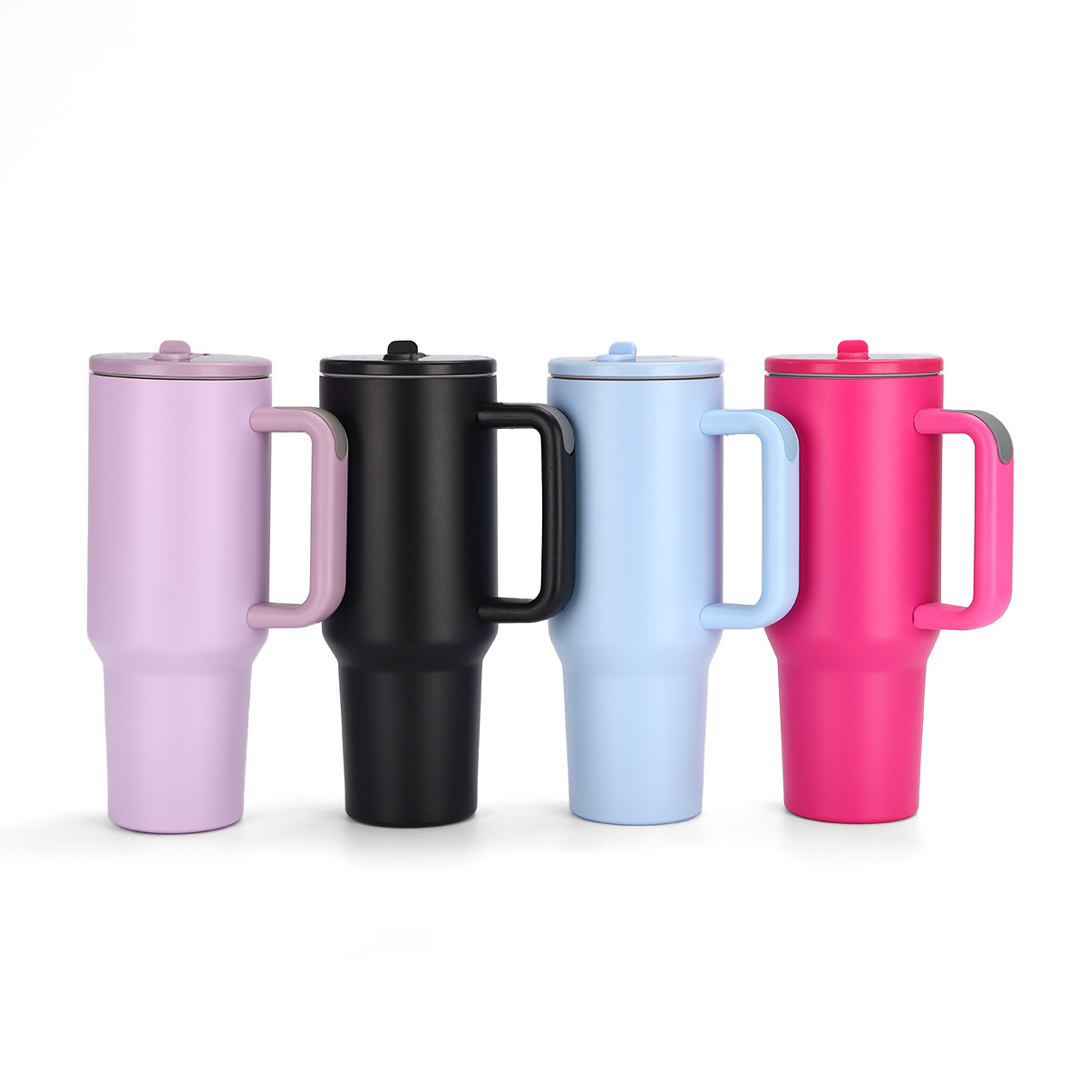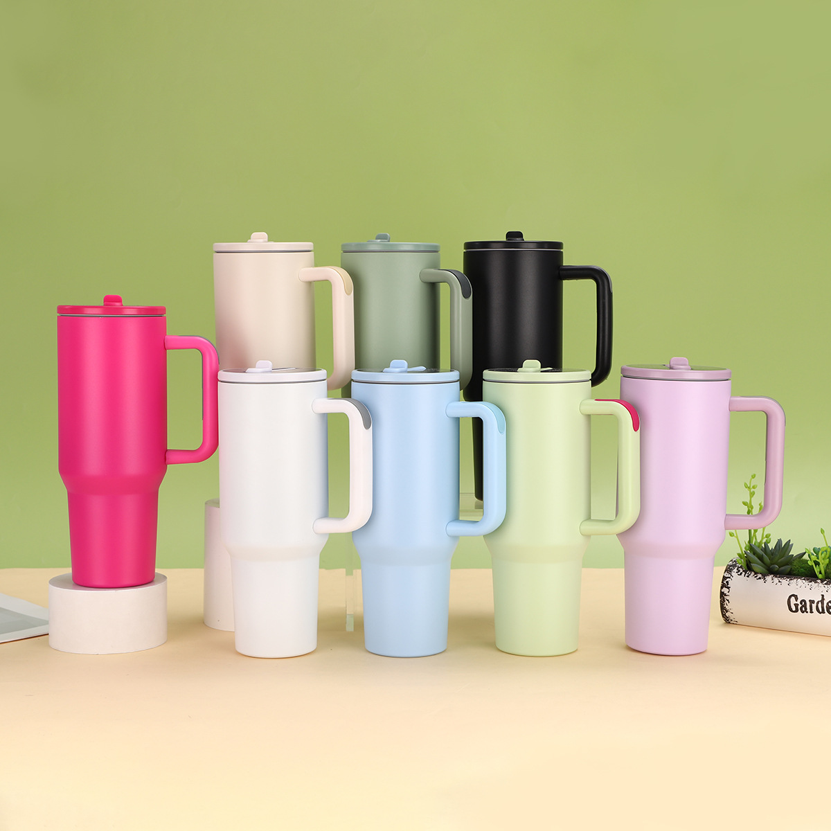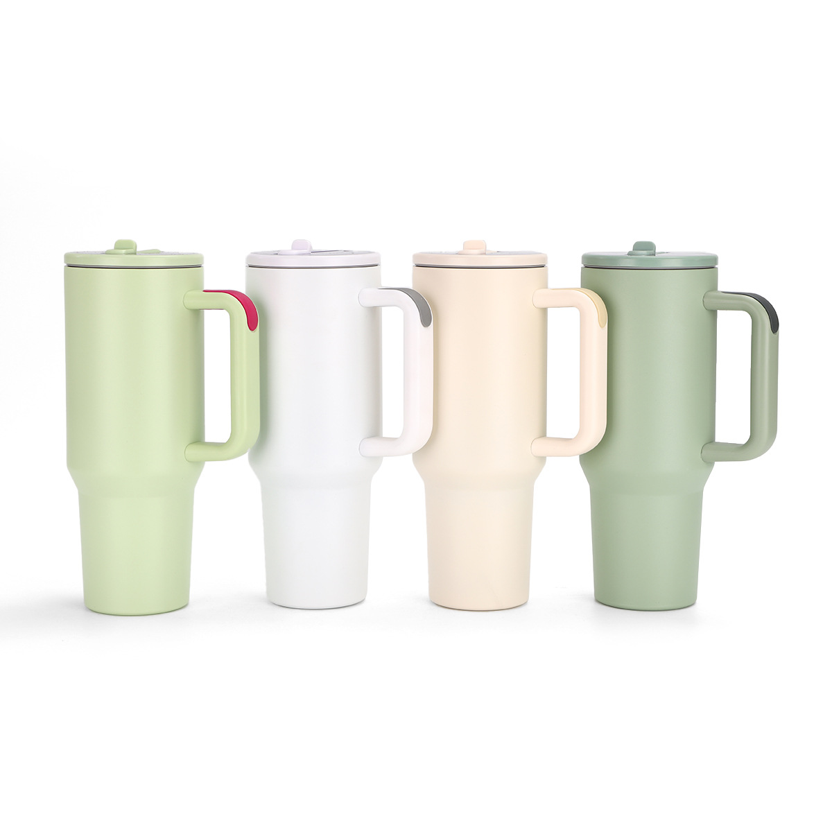 접이식 빨대가 있는 국경 간 40온스 손잡이 자동차 컵 304 스테인레스 스틸 진공 단열 컵 냉각 아이스 컵스토어 가기