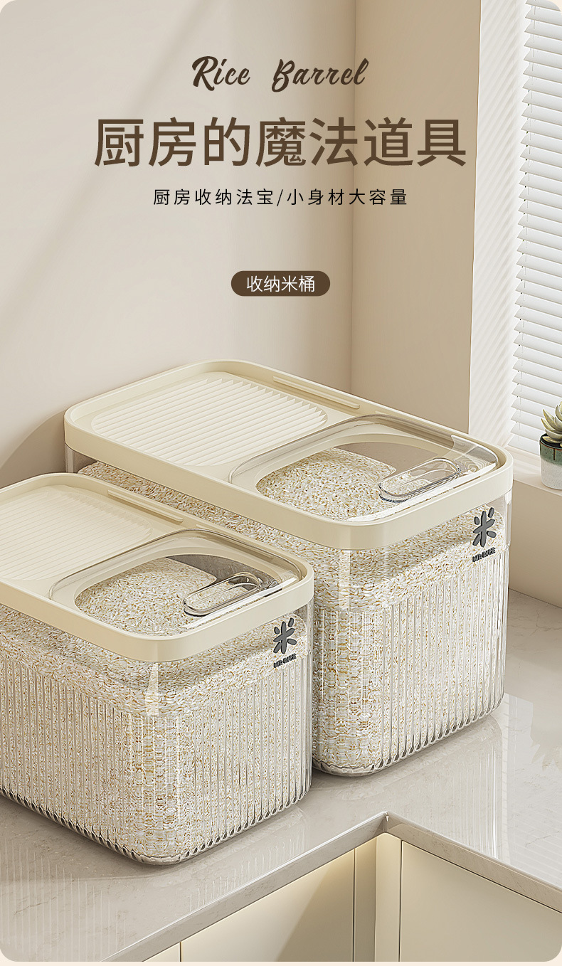 새로운 스타일의 2024m 버킷 쌀 저장 용기, 대형 쌀 저장 상자, 가정용 방충 밀봉 및 방습 쌀