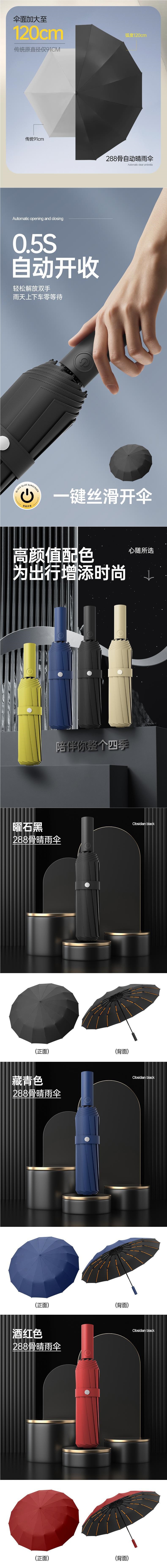 288 뼈 자동 폭풍 방지 우산 남성과 여성을위한 추가 두꺼운 강화 접는 우산
