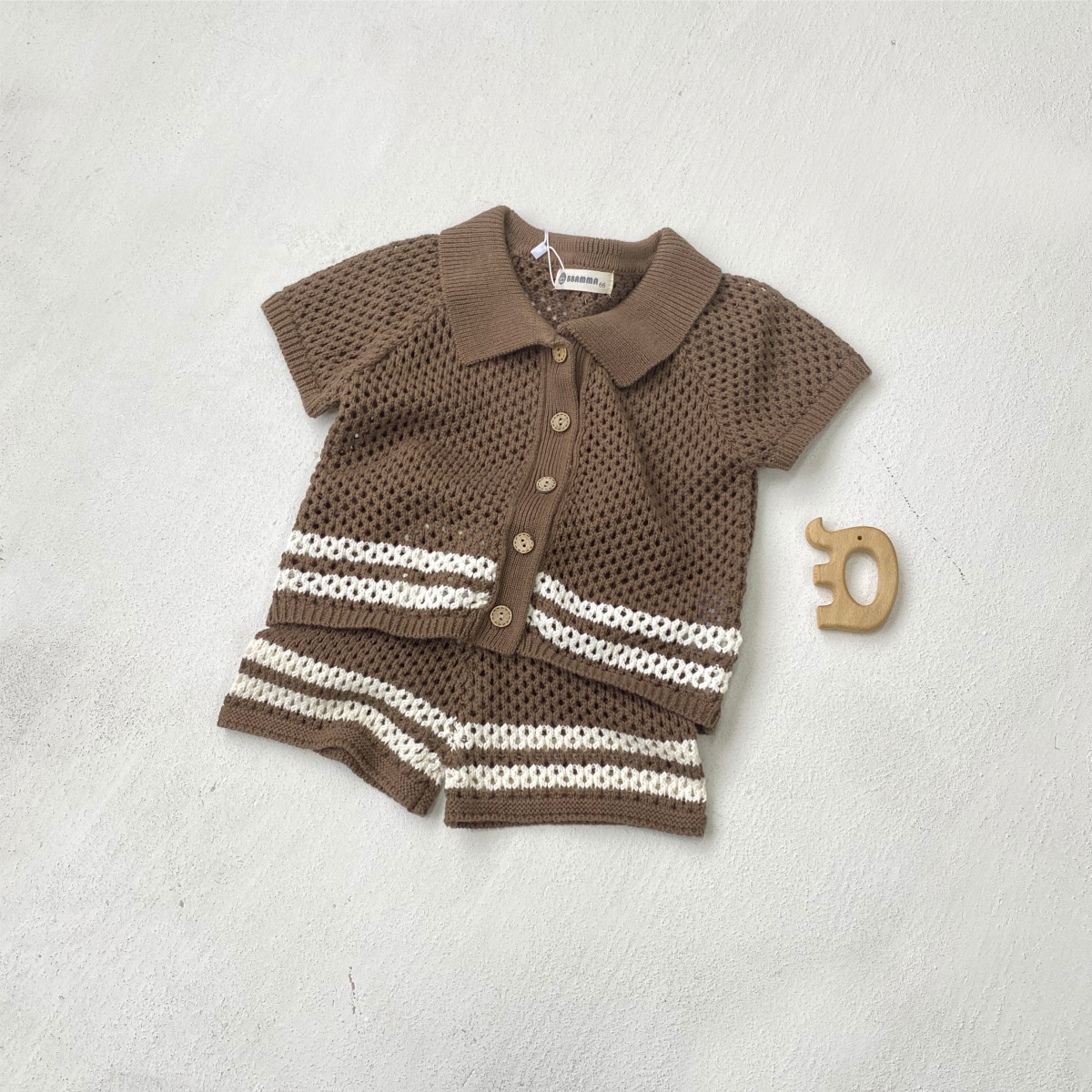아기의 스웨터 분할 투피스 세트를 세트 아기의 여름 빈 라르 니트 카디건 스웨터 반바지