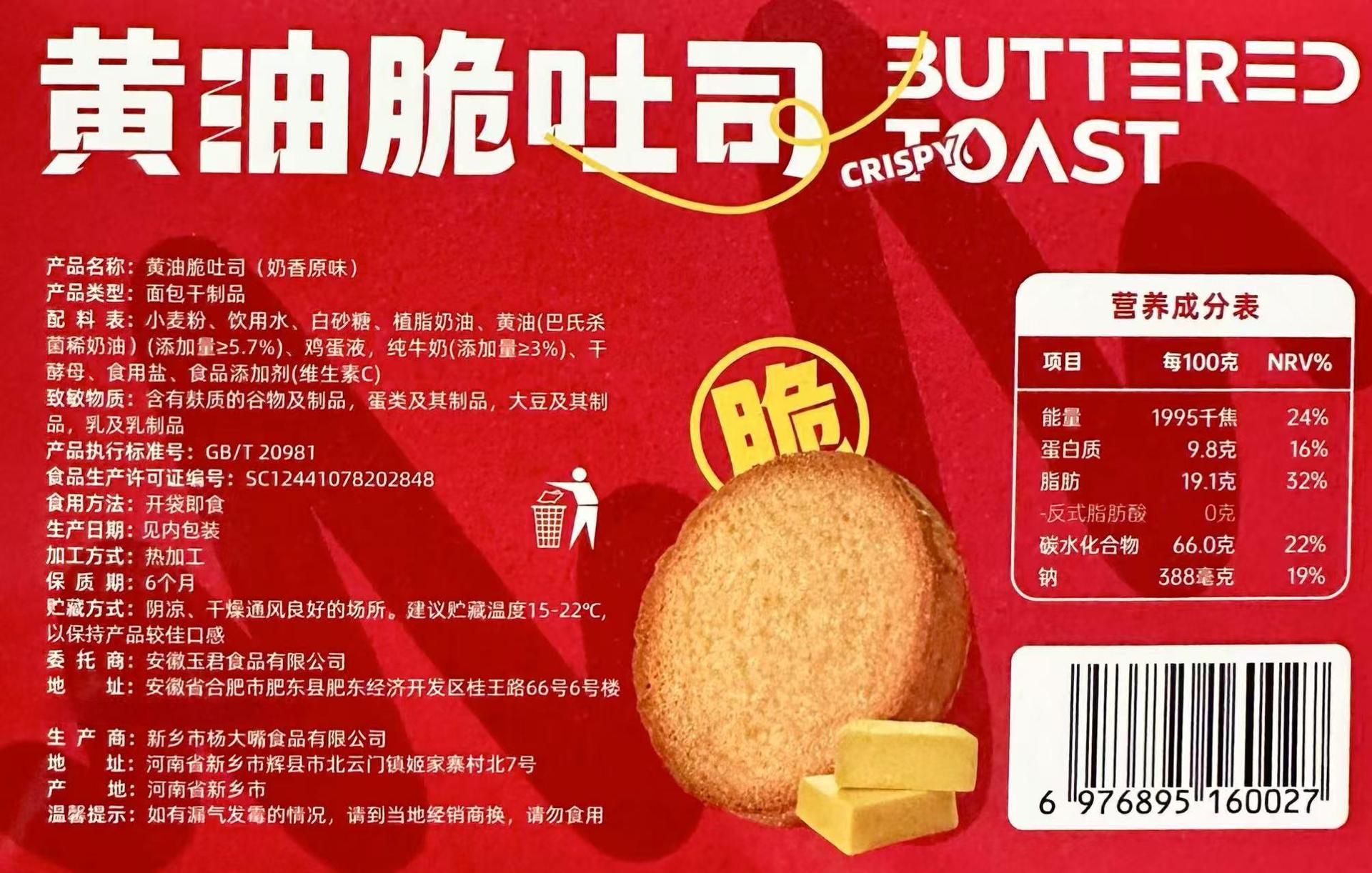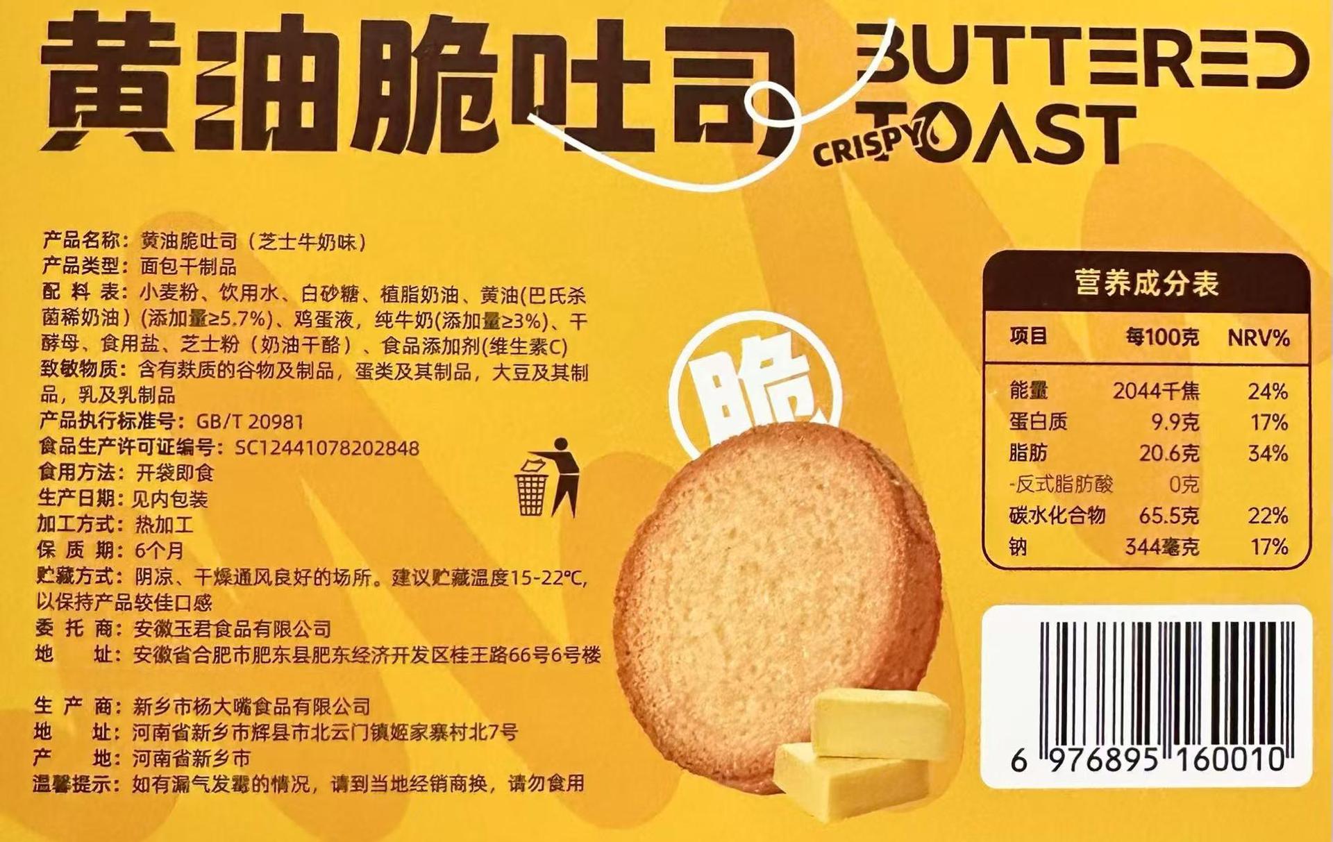 Guifujji 버터 크리스피 토스트 밀크 치즈 밀크 크리스피 인터넷 연예인 스낵 애프터눈 티 아침 식사 빵