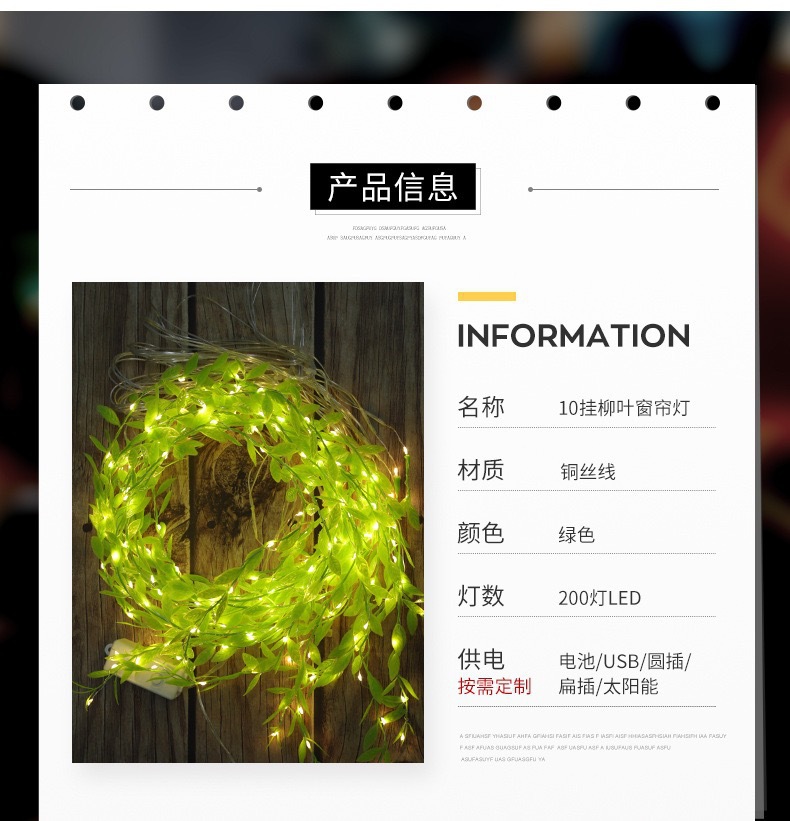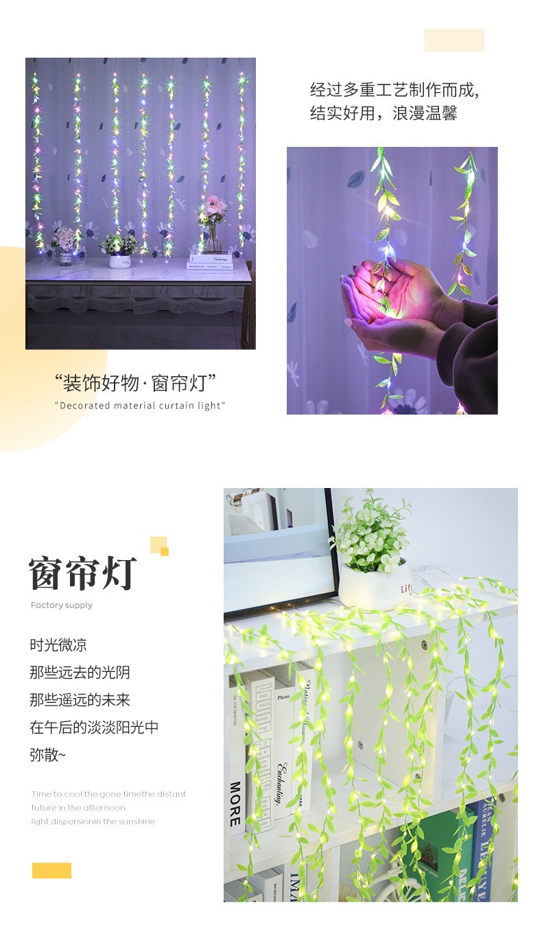 • 3* 1m 버드나무 잎 커튼 조명 10개 [리모컨이 있는 USB]
