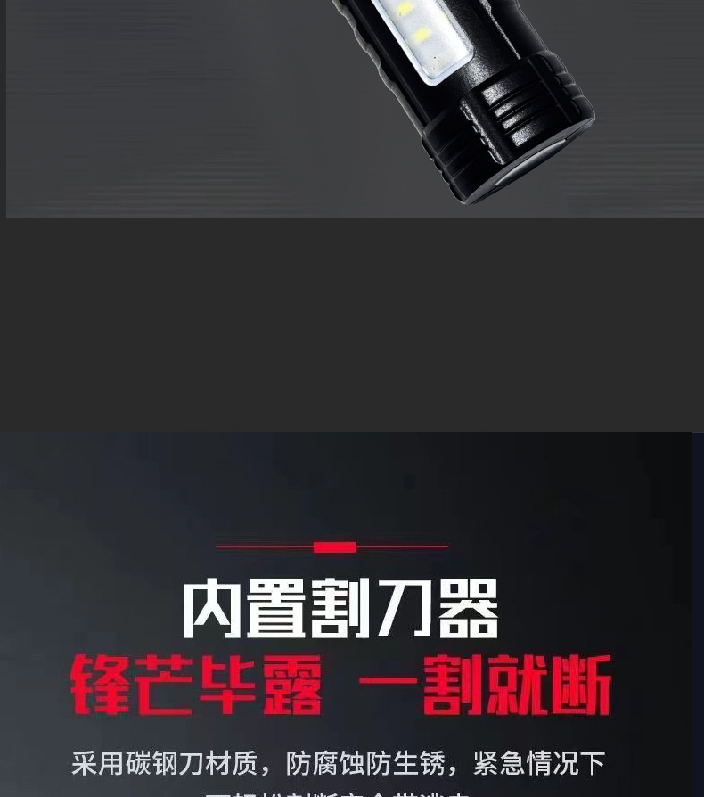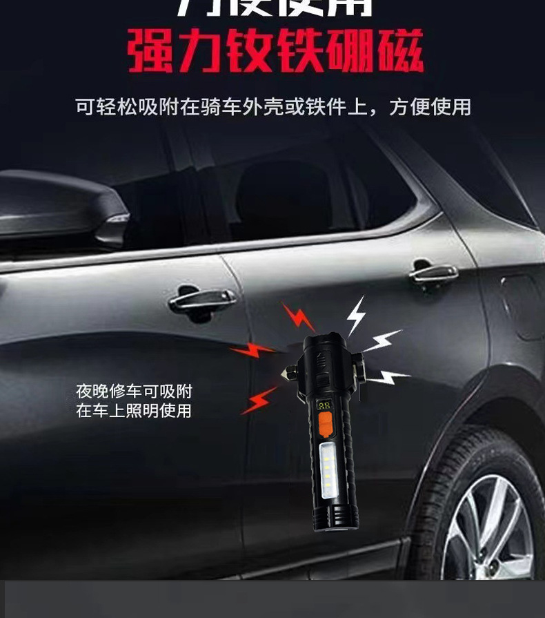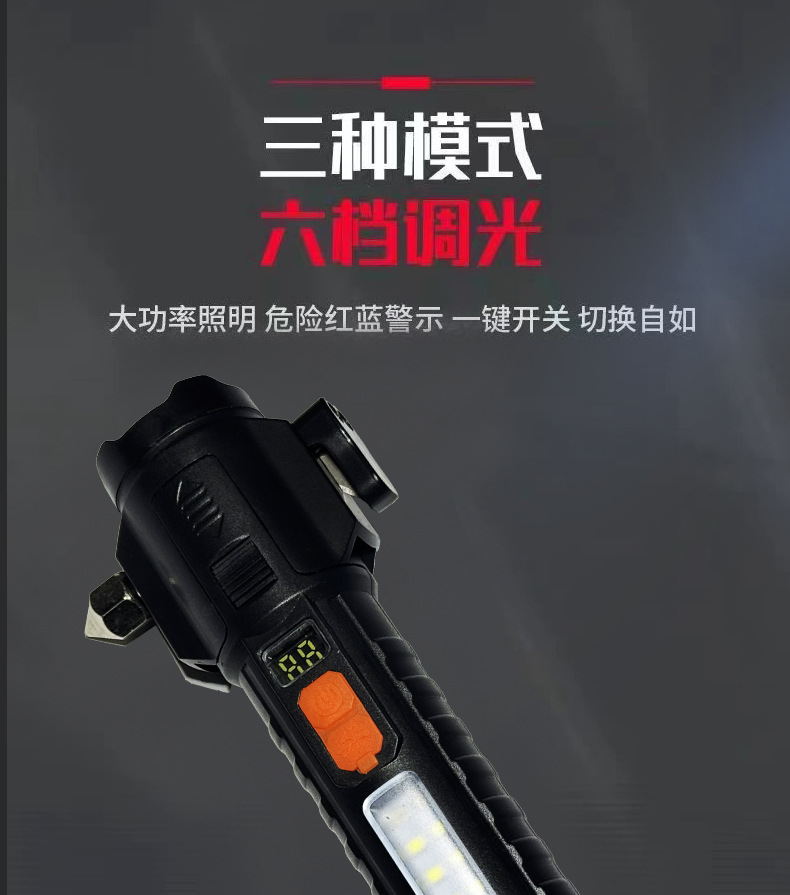 국경 간 새로운 망치 밝은 손전등 휴대용 야외 COB 비상 작업 조명 줌 원거리 창 깨진 손전등