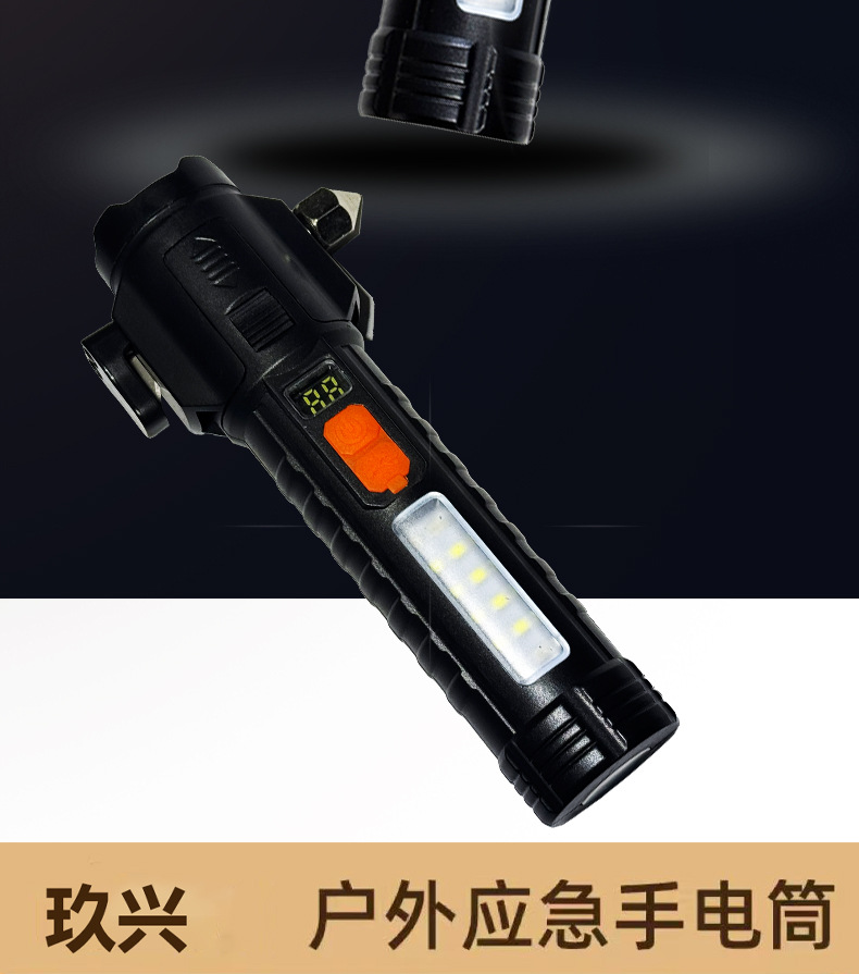 국경 간 새로운 망치 밝은 손전등 휴대용 야외 COB 비상 작업 조명 줌 원거리 창 깨진 손전등스토어 가기