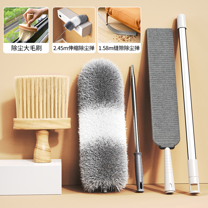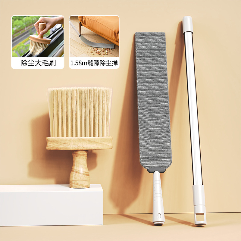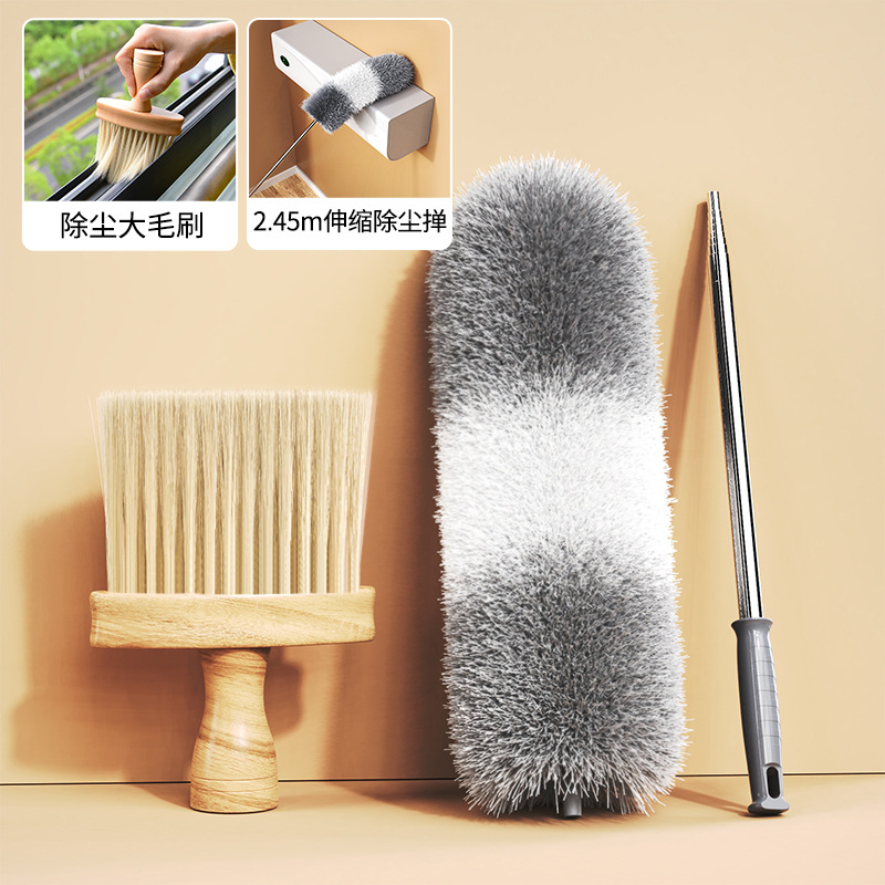 • 업그레이드된 원목 대형 브러시 + 먼지떨이 [신축식 확장 디자인] [ 2.45m ] + [ 침대 밑 브러시 ]
