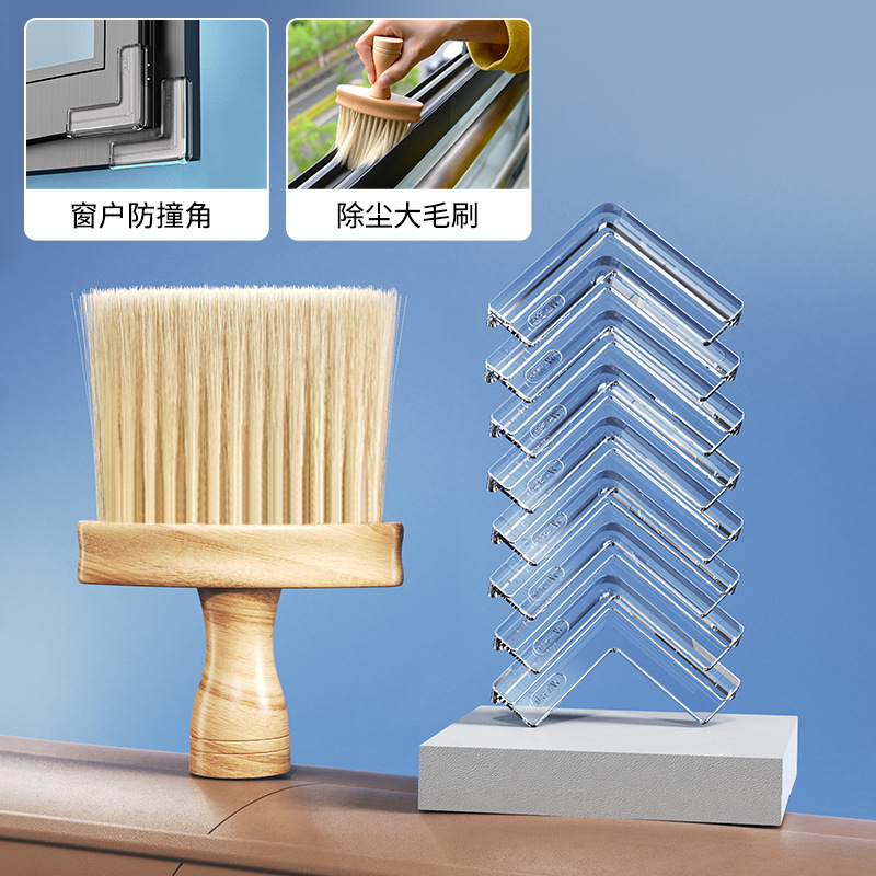 • 업그레이드된 대형 원목 브러시 + 창 모서리 보호대 8개