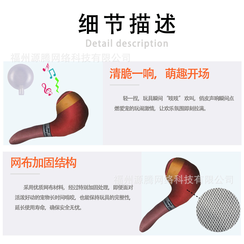 注意:我司非常重视产品的质量,每个产品都有网布加固处理,绝非市面上的只有一层绒布,软趴趴的萌宠一咬就破。