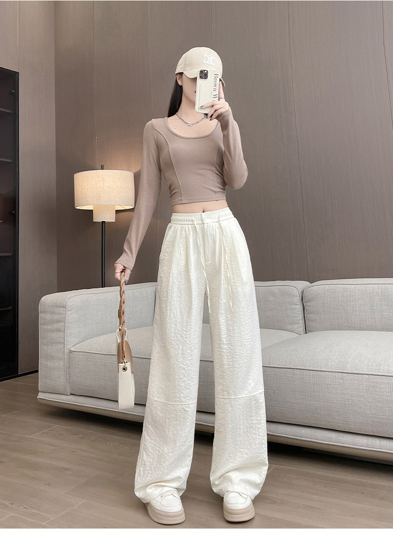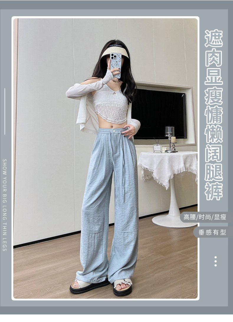 2025 새로운 Meimei Macaron 컬러 Yamamoto 팬츠 쿨 센스 경량 와이드 레그 팬츠 여성용 게으른 슬리밍 디자인 태양 보호스토어 가기