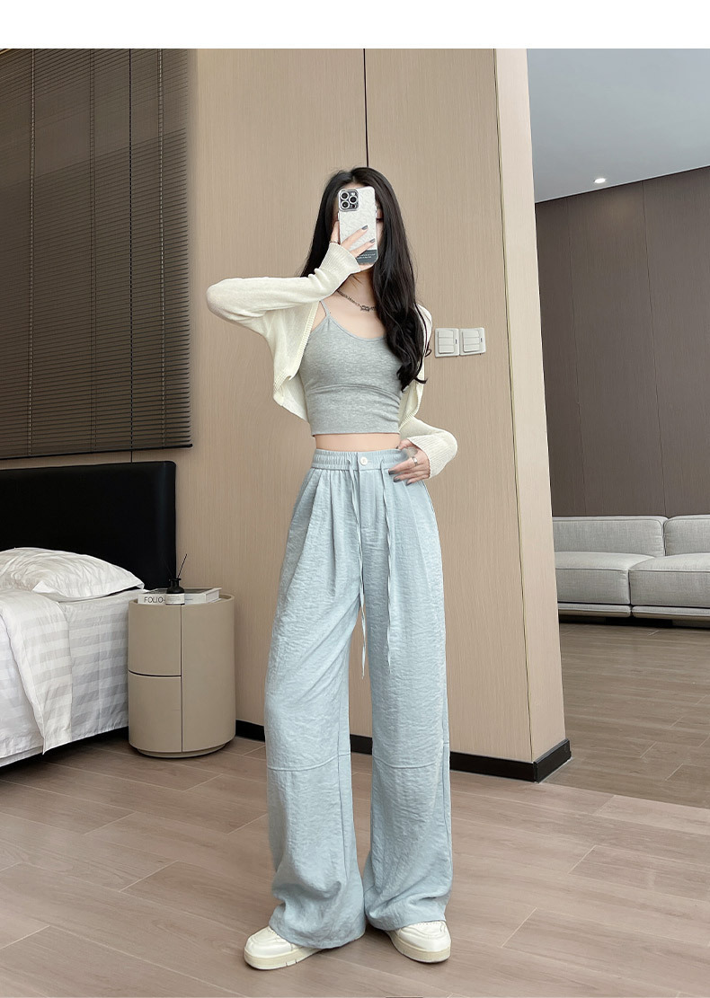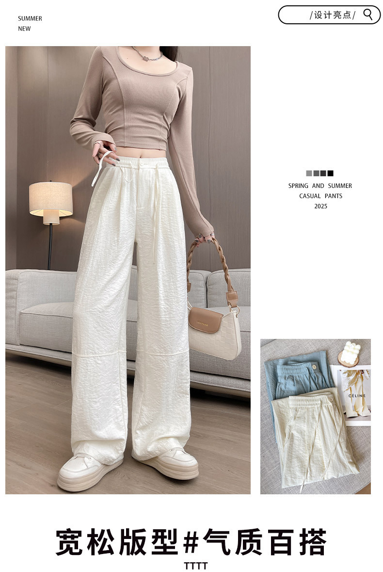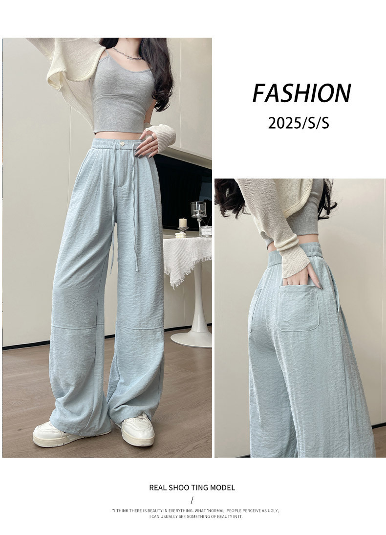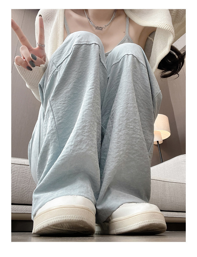2025 새로운 Meimei Macaron 컬러 Yamamoto 팬츠 쿨 센스 경량 와이드 레그 팬츠 여성용 게으른 슬리밍 디자인 태양 보호