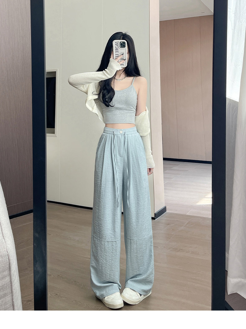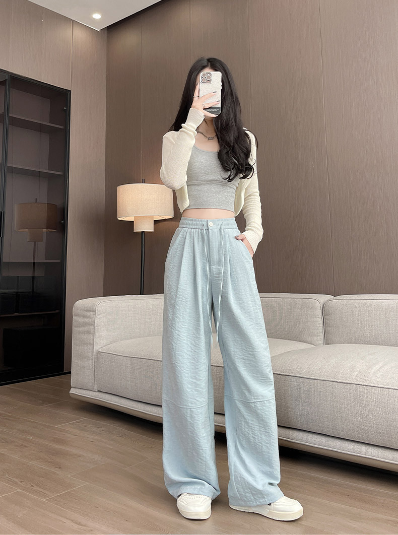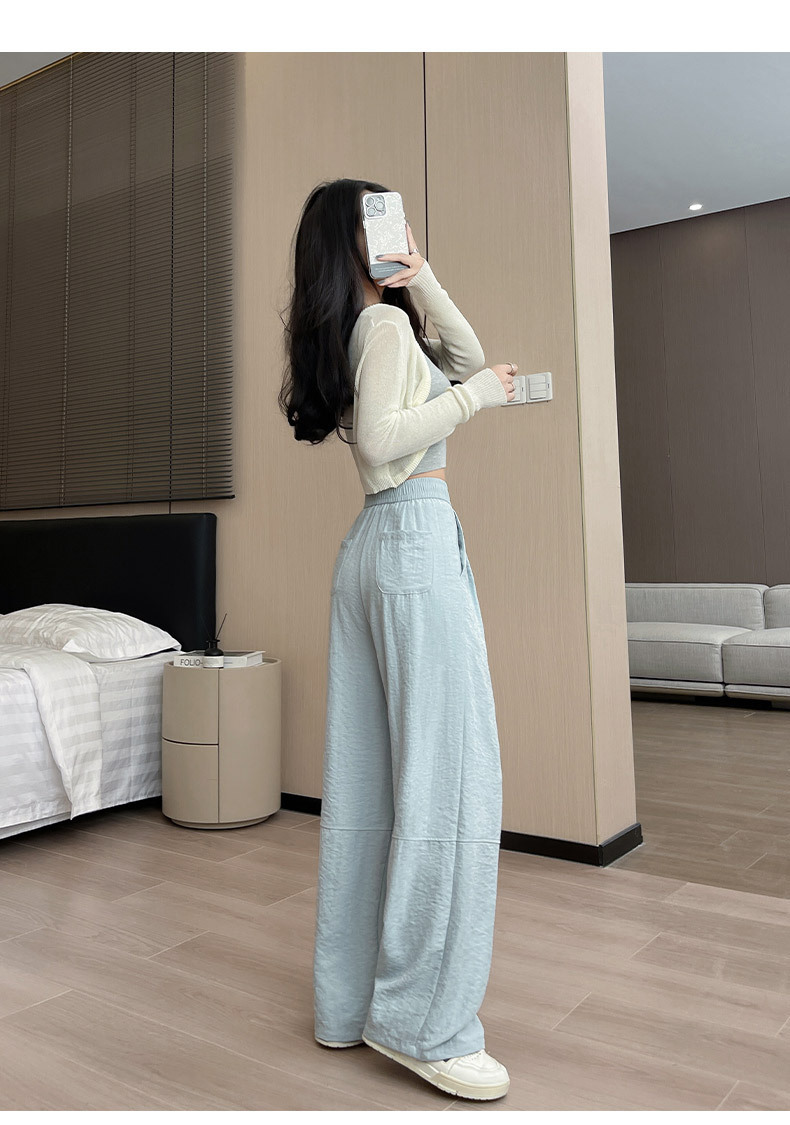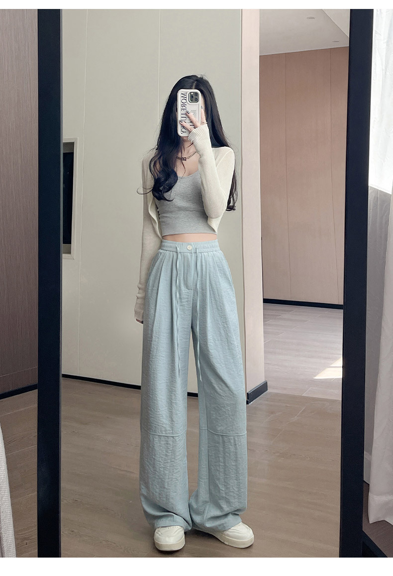 2025 새로운 Meimei Macaron 컬러 Yamamoto 팬츠 쿨 센스 경량 와이드 레그 팬츠 여성용 게으른 슬리밍 디자인 태양 보호