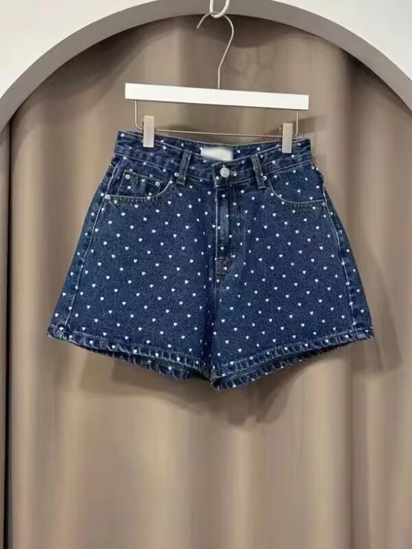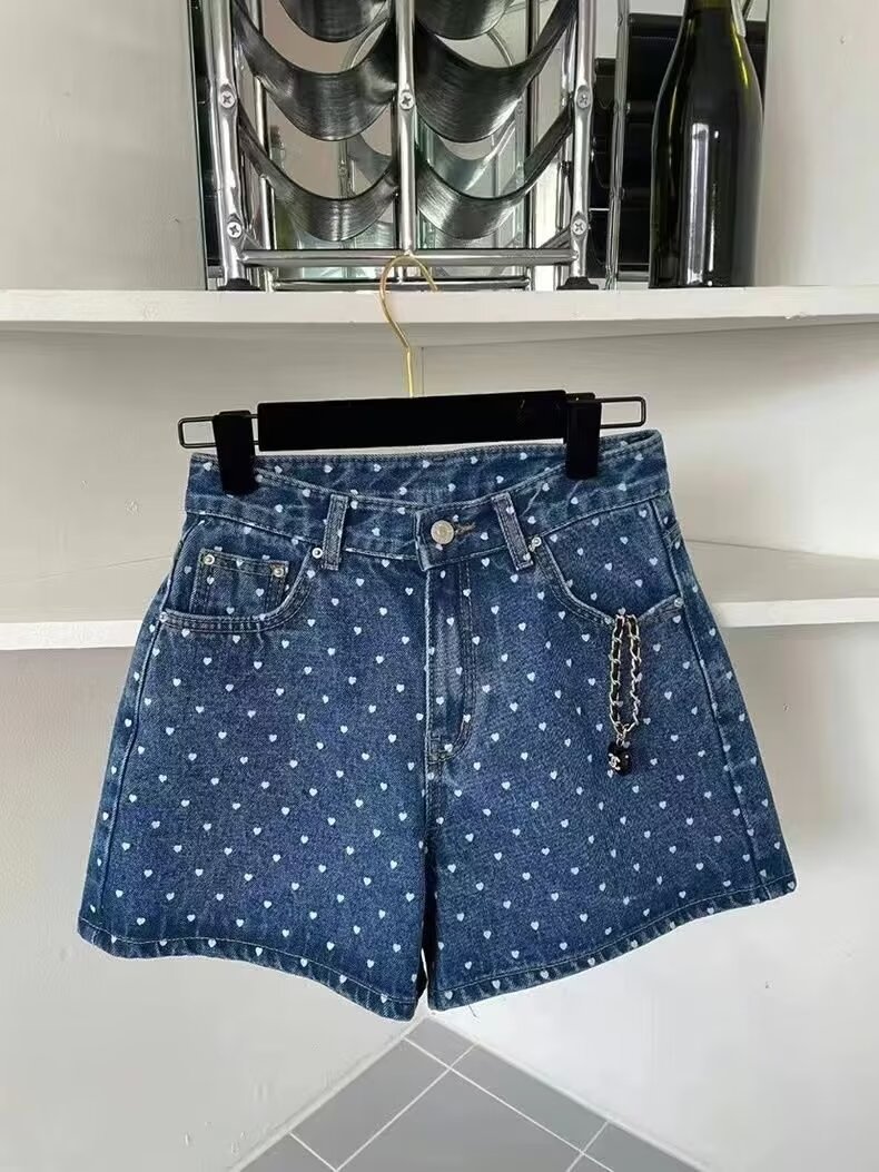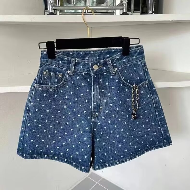여름 여성을 위한 블루 도트 프린트 데님 반바지 새로운 스타일 루즈 슬리밍 패셔너블 하이 웨이스트 A 라인 와이드 레그 팬츠