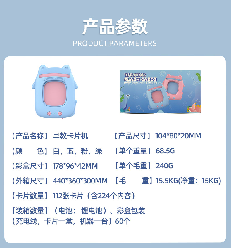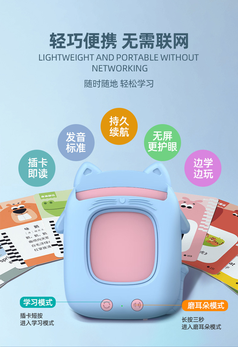 맞춤형 새로운 고양이 조기 교육 기계 교육 카드 기계 어린이 계몽 중국어 및 영어 당나라 시 카드 학습 기계 카드 읽기스토어 가기