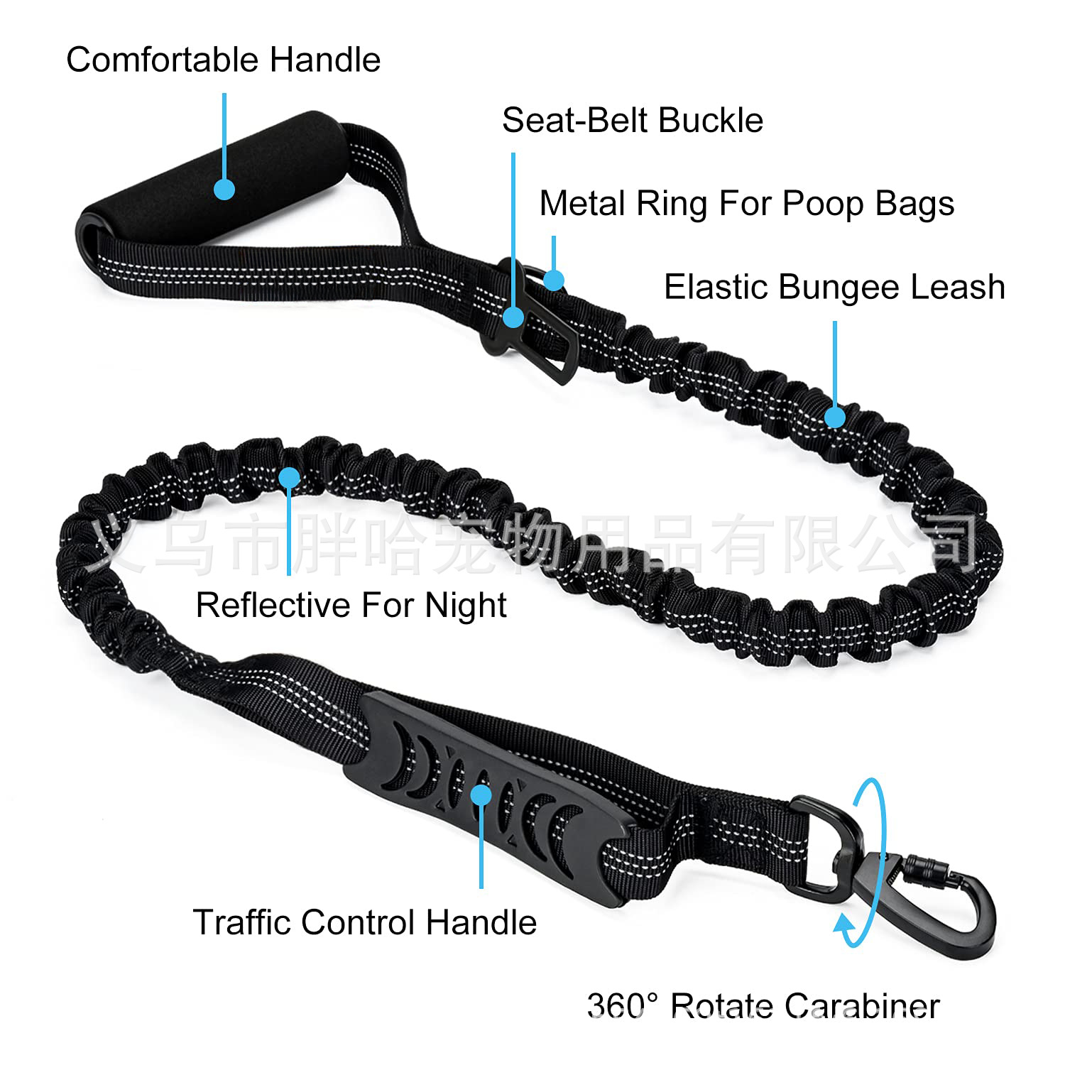 두 배 손잡이 나일론 전술 개 밧줄 폭발 방지 반사 견인 밧줄 탄성 야외 개 밧줄 개 밧줄 개 밧줄스토어 가기