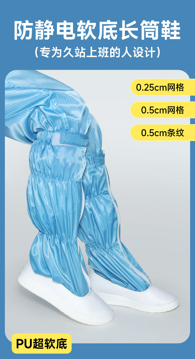 정전기 방지 0.25 그리드 하이탑 먼지 없는 신발 PU 두꺼운 부드러운 바닥 깨끗한 작업장 작업 방진 통기성 부츠