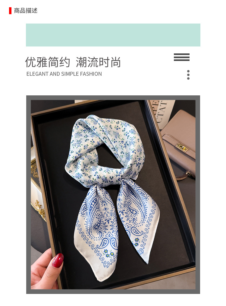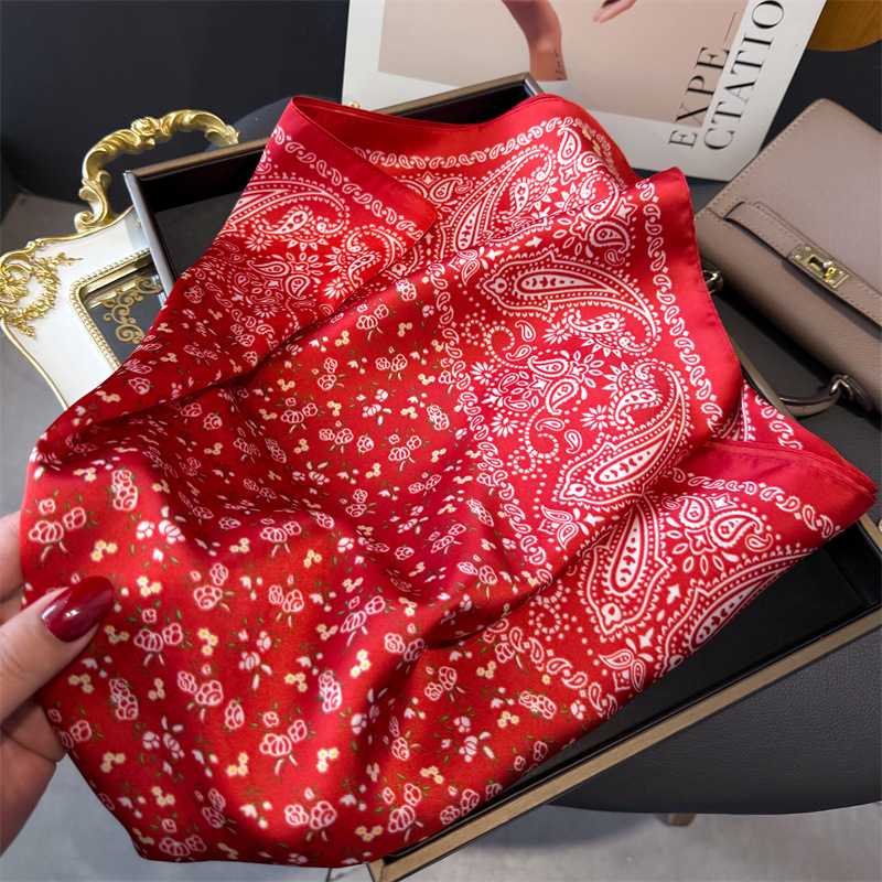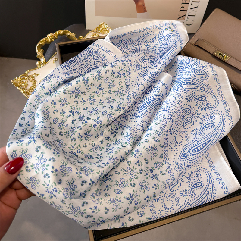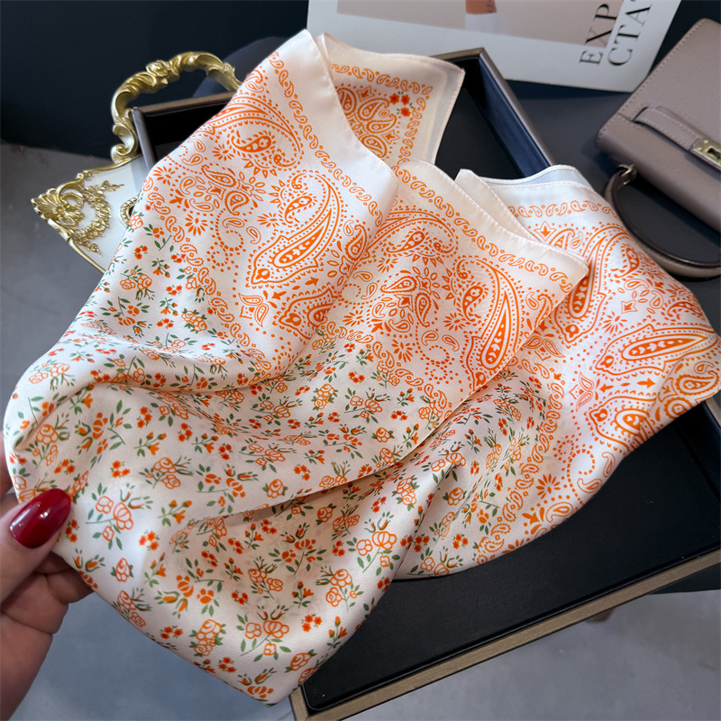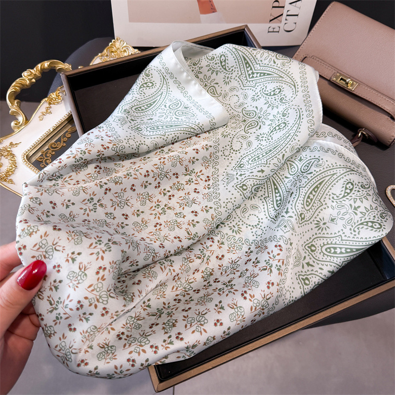 간단한 캐슈 꽃 인쇄 실크 스카프 광장 고급 목도리 선 스크린 목 작은 광장 머리 스카프 여성용 스카프