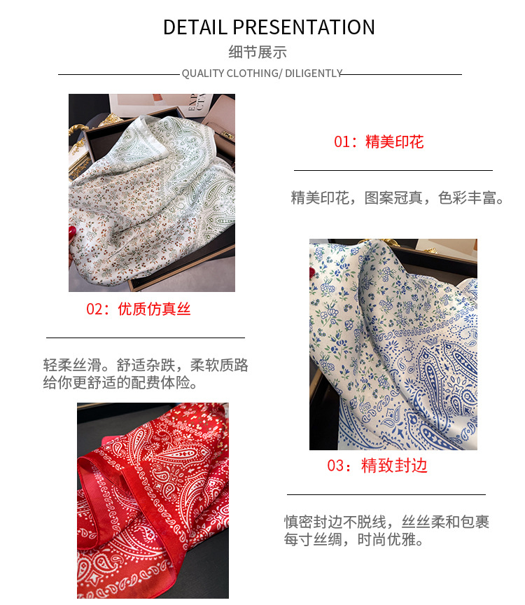 간단한 캐슈 꽃 인쇄 실크 스카프 광장 고급 목도리 선 스크린 목 작은 광장 머리 스카프 여성용 스카프스토어 가기