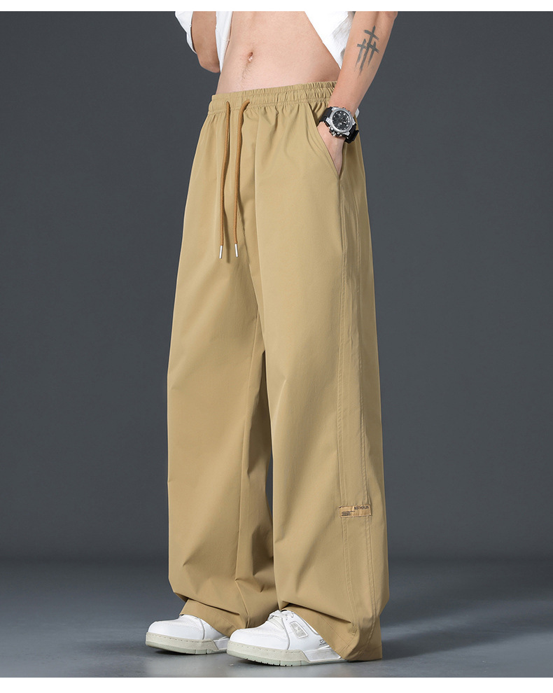 아이스 실크 쿨 스트레이트 팬츠 남성 여름 미국 패션 브랜드 스포츠 캐주얼 바지 루즈 드레이프 와이드 레그 팬츠