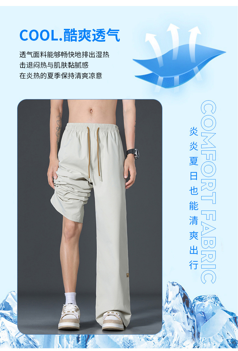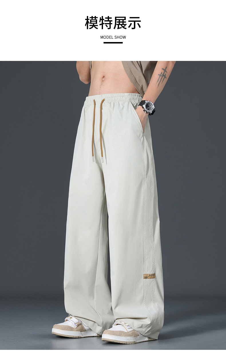 아이스 실크 쿨 스트레이트 팬츠 남성 여름 미국 패션 브랜드 스포츠 캐주얼 바지 루즈 드레이프 와이드 레그 팬츠스토어 가기