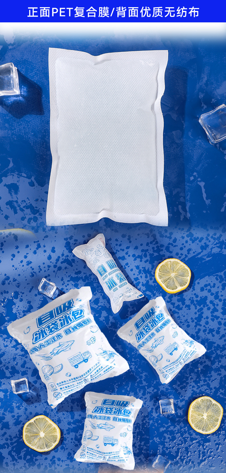 양면 자체 흡수 얼음 가방 도매 일회용 물이 없는 신선 유지 냉장 익스프레스 신선 식품 항공 얼음 가방