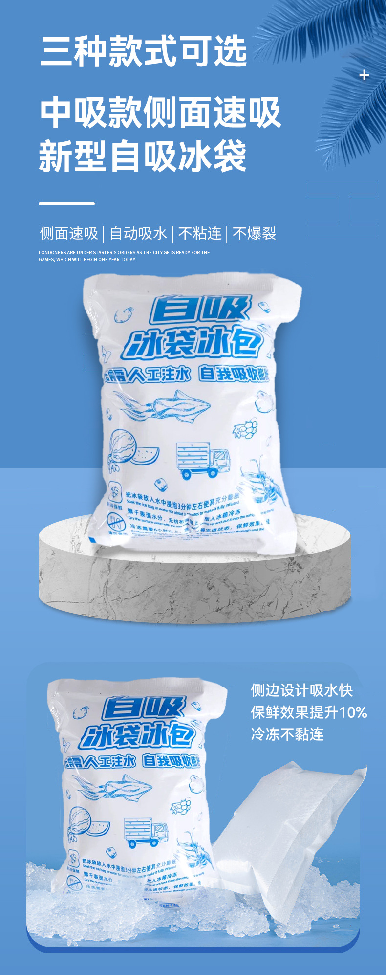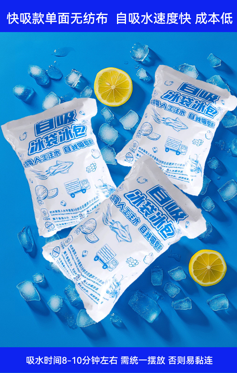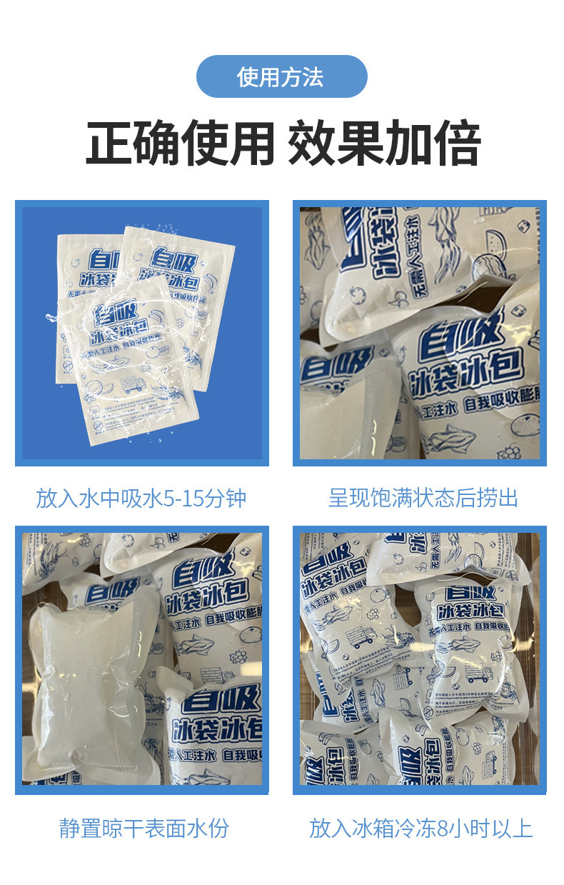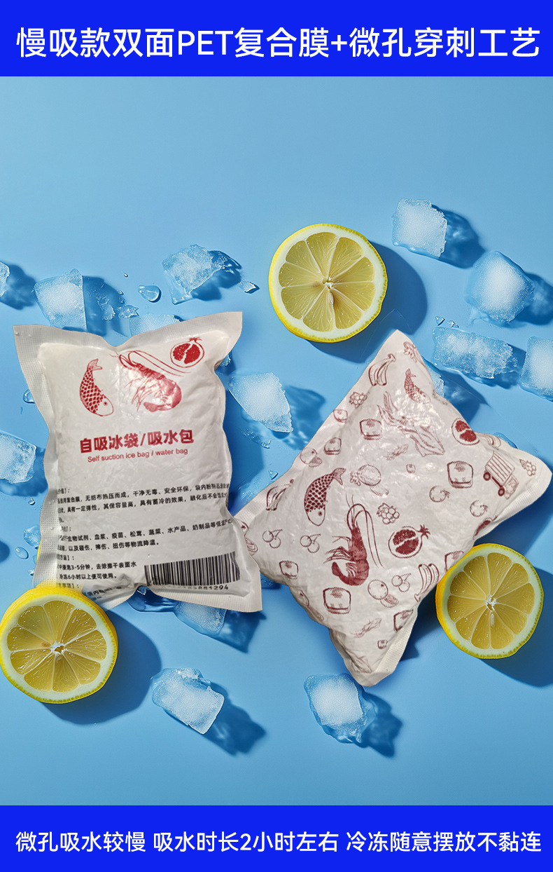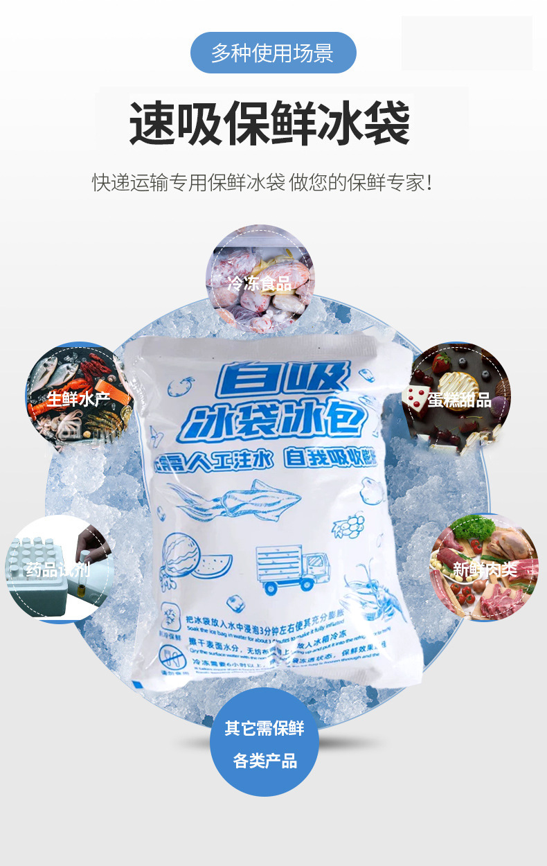 양면 자체 흡수 얼음 가방 도매 일회용 물이 없는 신선 유지 냉장 익스프레스 신선 식품 항공 얼음 가방스토어 가기