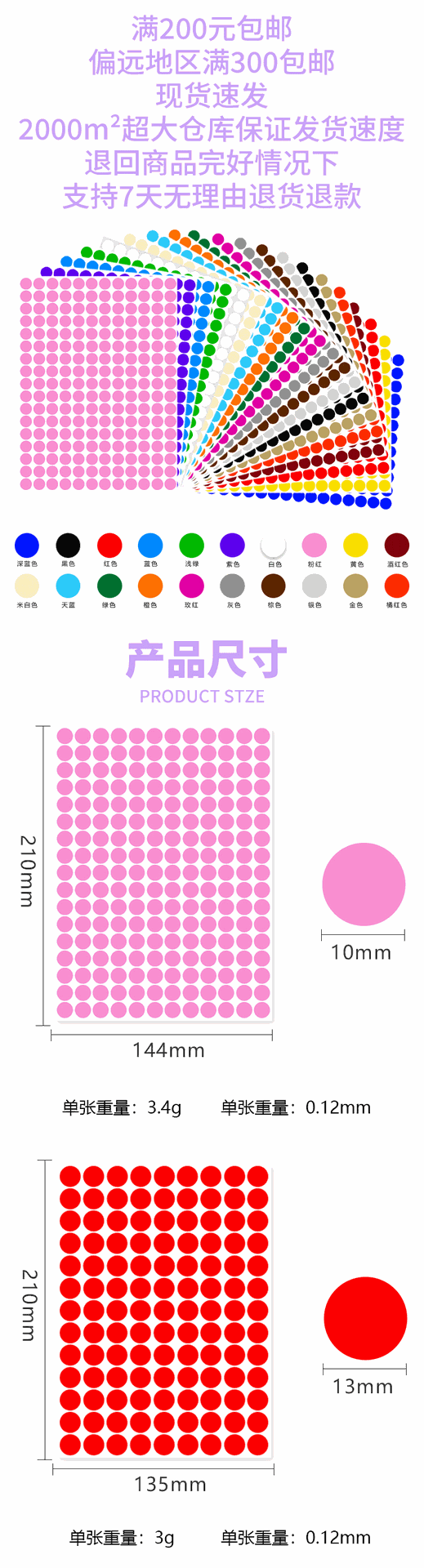 A5 자체 접착 13mm 스티커 컬러 구리 판지 도트 스티커 월 폴카 도트 분류 마크 필기 원형 스티커스토어 가기