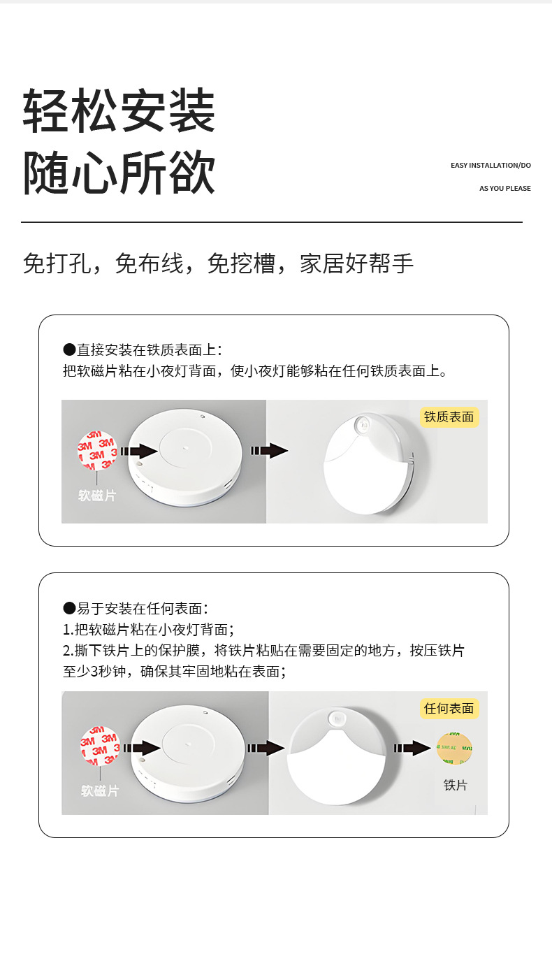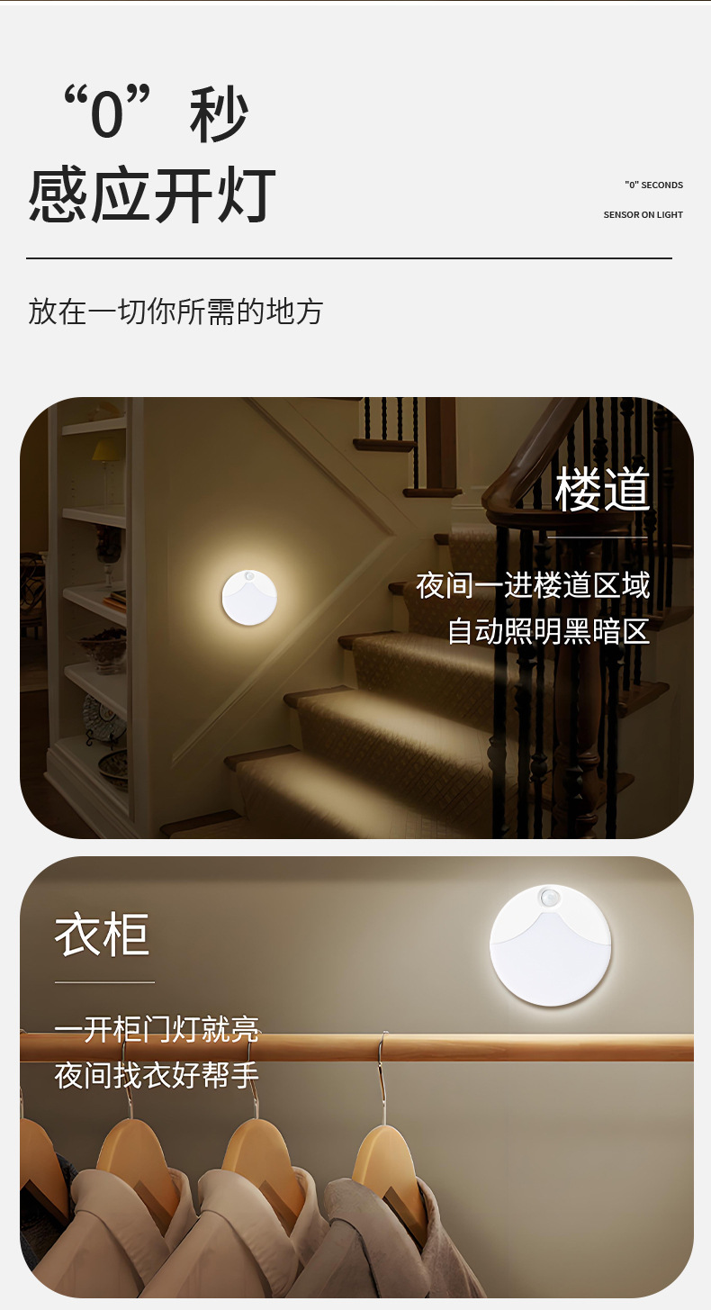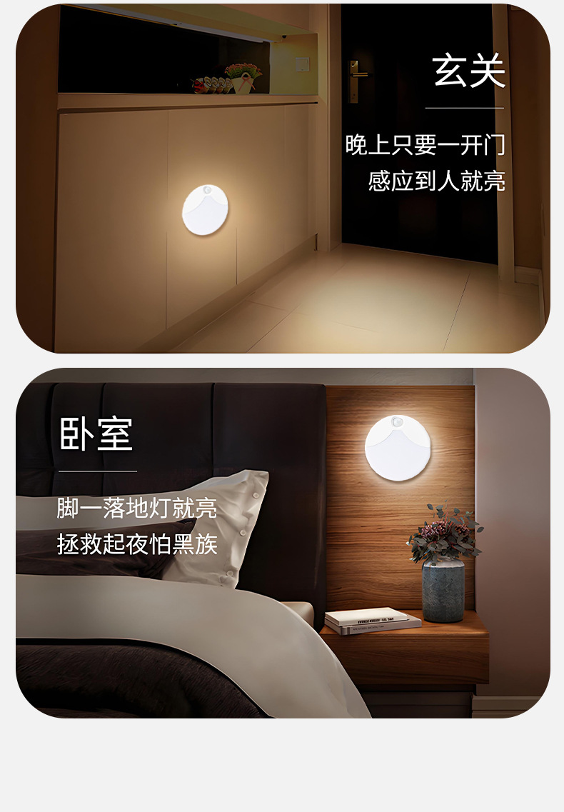 인체 유도 램프 스마트 LED 야간 조명 복도 주방 현관 자기 유도 야간 조명 국경 도매